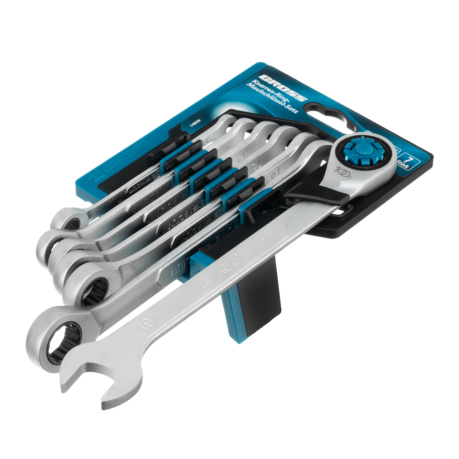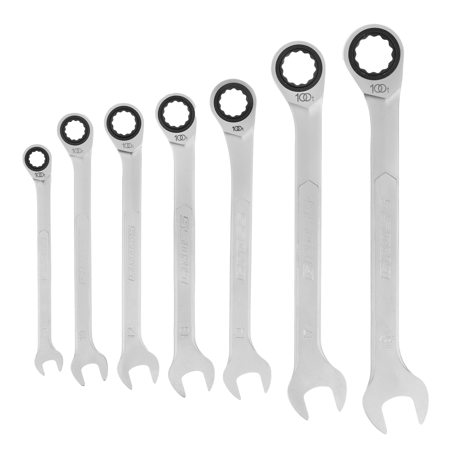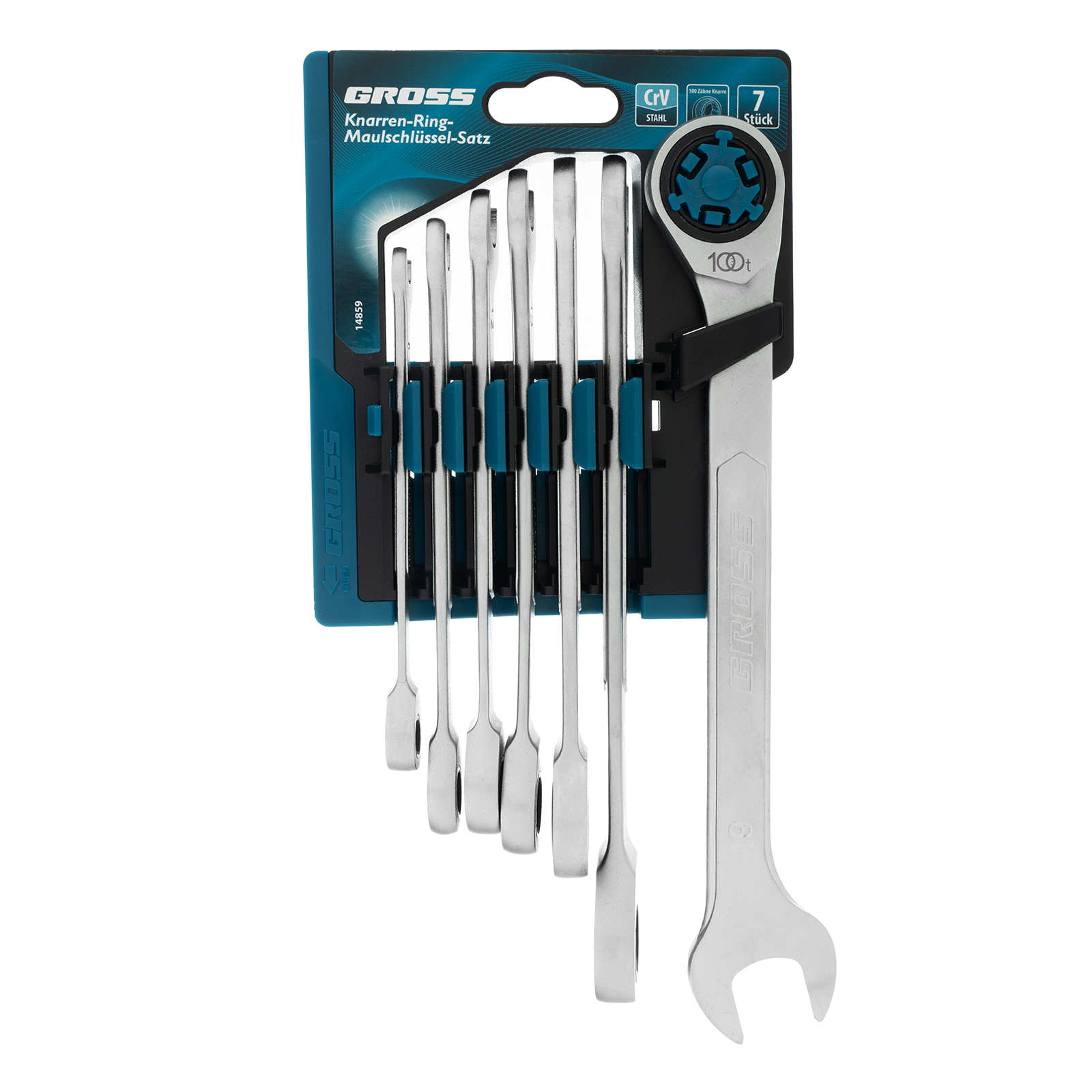 Набор ключей комбинированных трещоточных, количество зубьев 100, СRV, 7 шт, 8-19 мм Gross