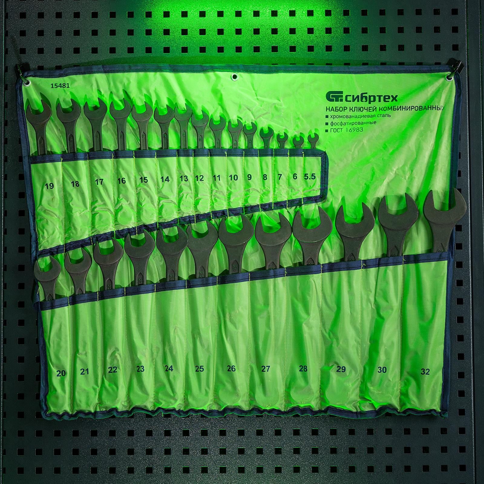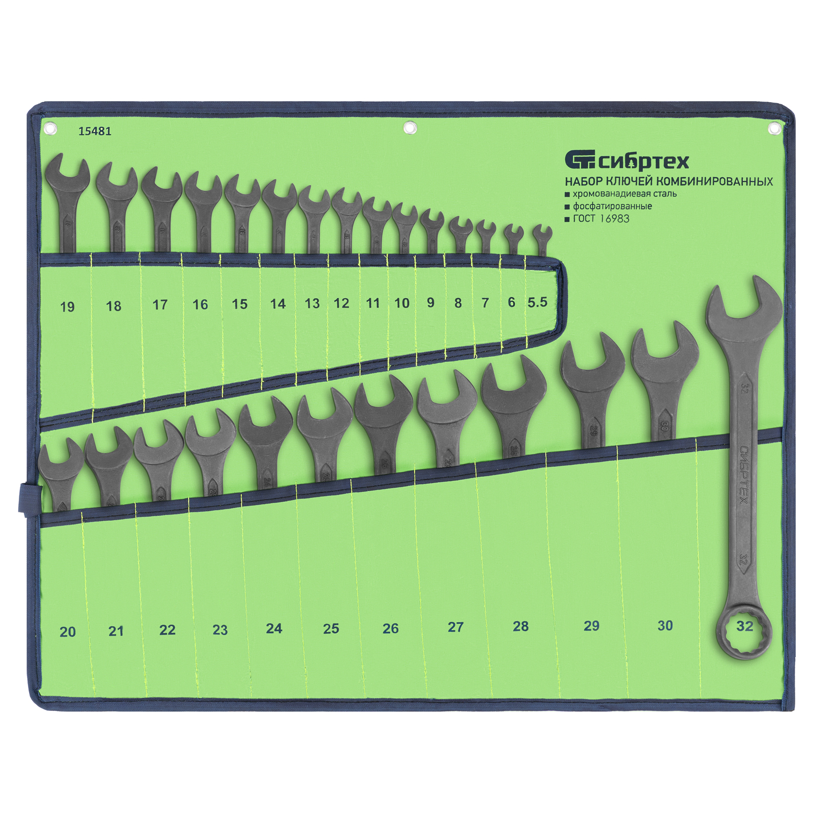 Набор ключей комбинированных, 5,5 - 32 мм, 27 шт., CrV, фосфатированные Сибртех в Санкт-Петербурге