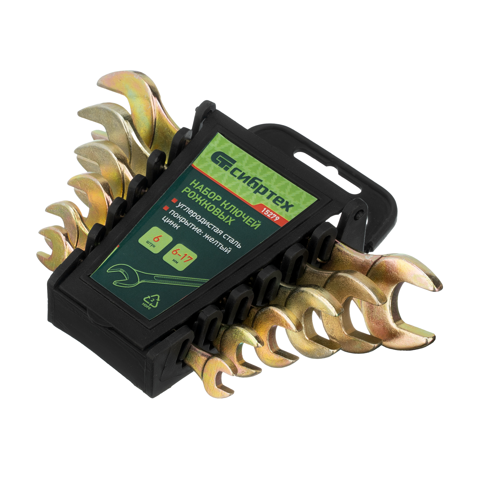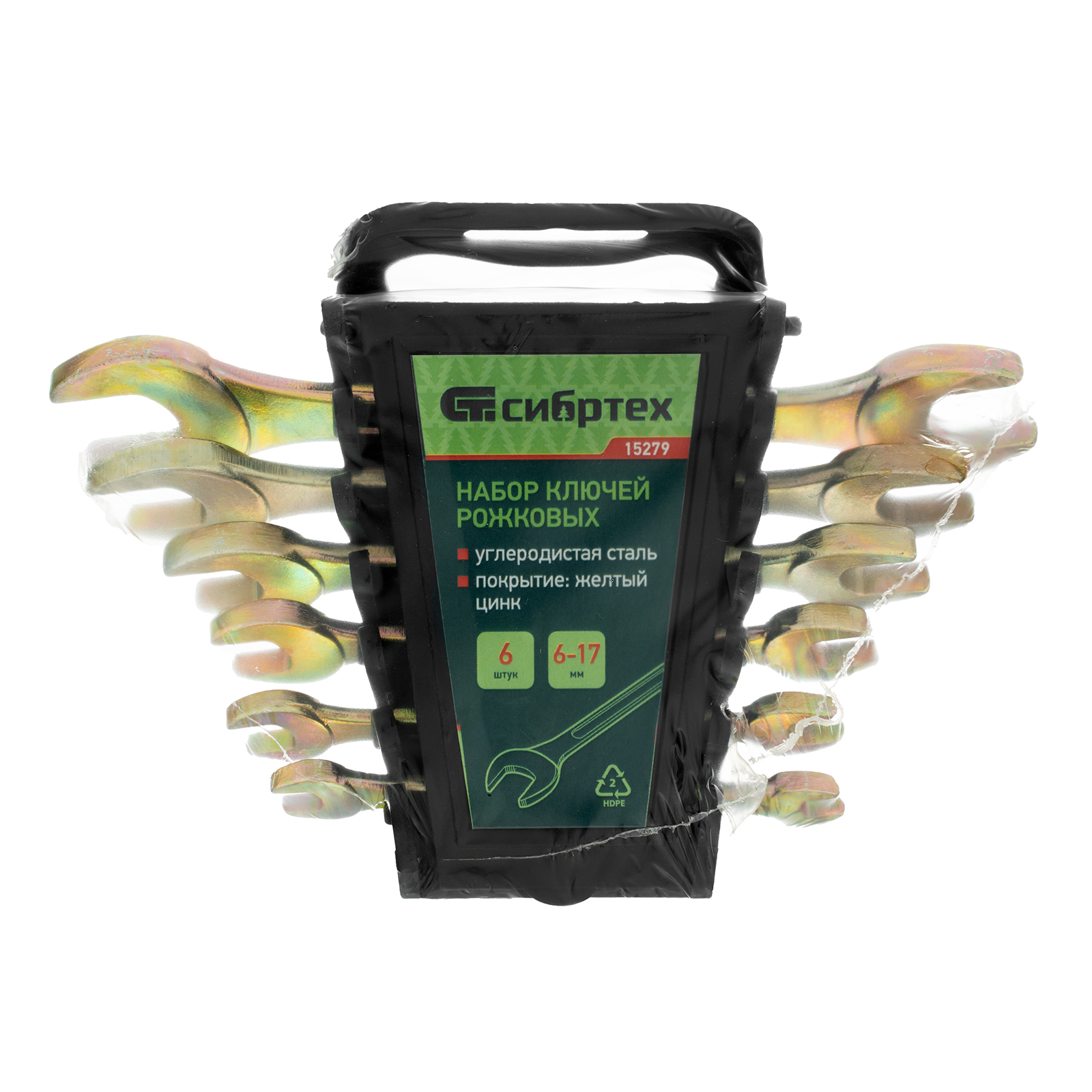 Набор ключей рожковых 6-17 мм, 6 шт, желтый цинк Сибртех в Санкт-Петербурге