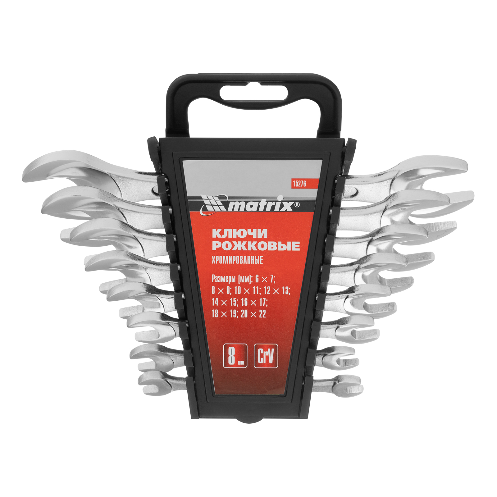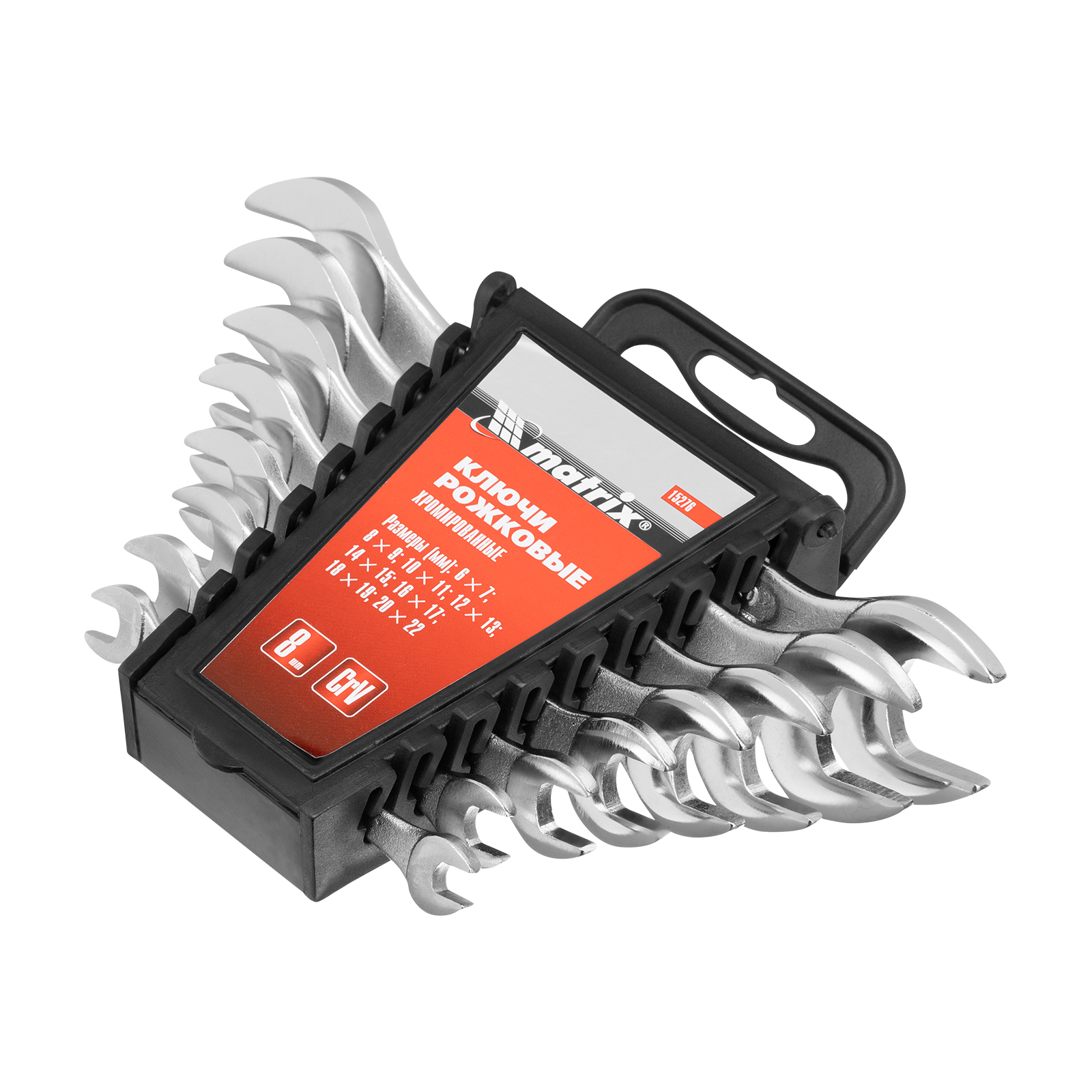 Набор ключей рожковых, 6-22 мм, 8 шт, CrV, хромированные Matrix