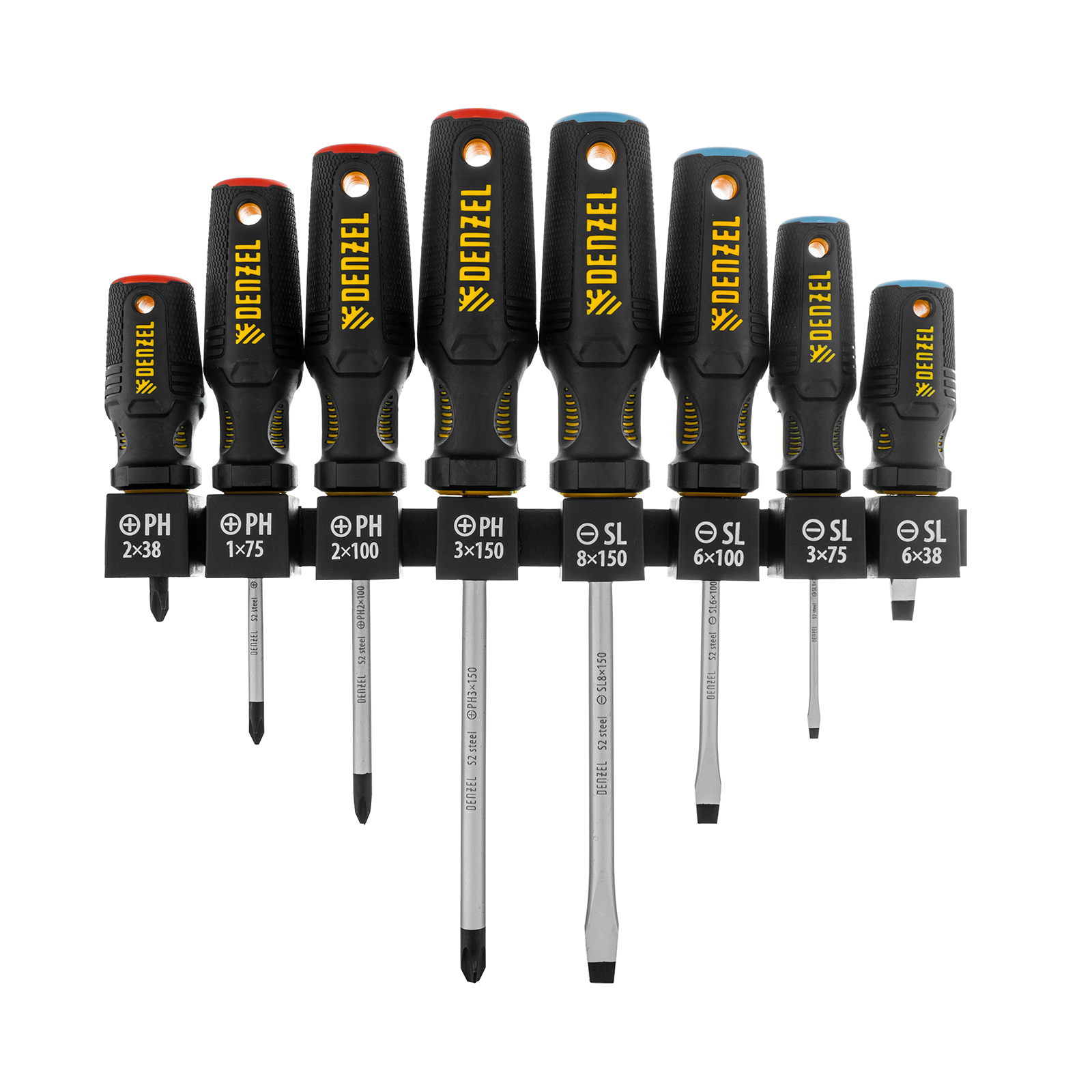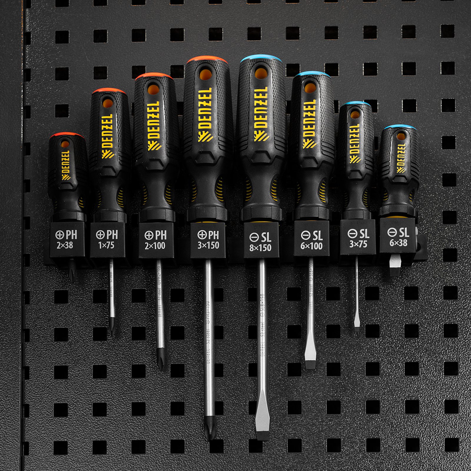• Удобное хранение — отверстия в рукоятках позволяют подвешивать отвертки на крючок или скобу.