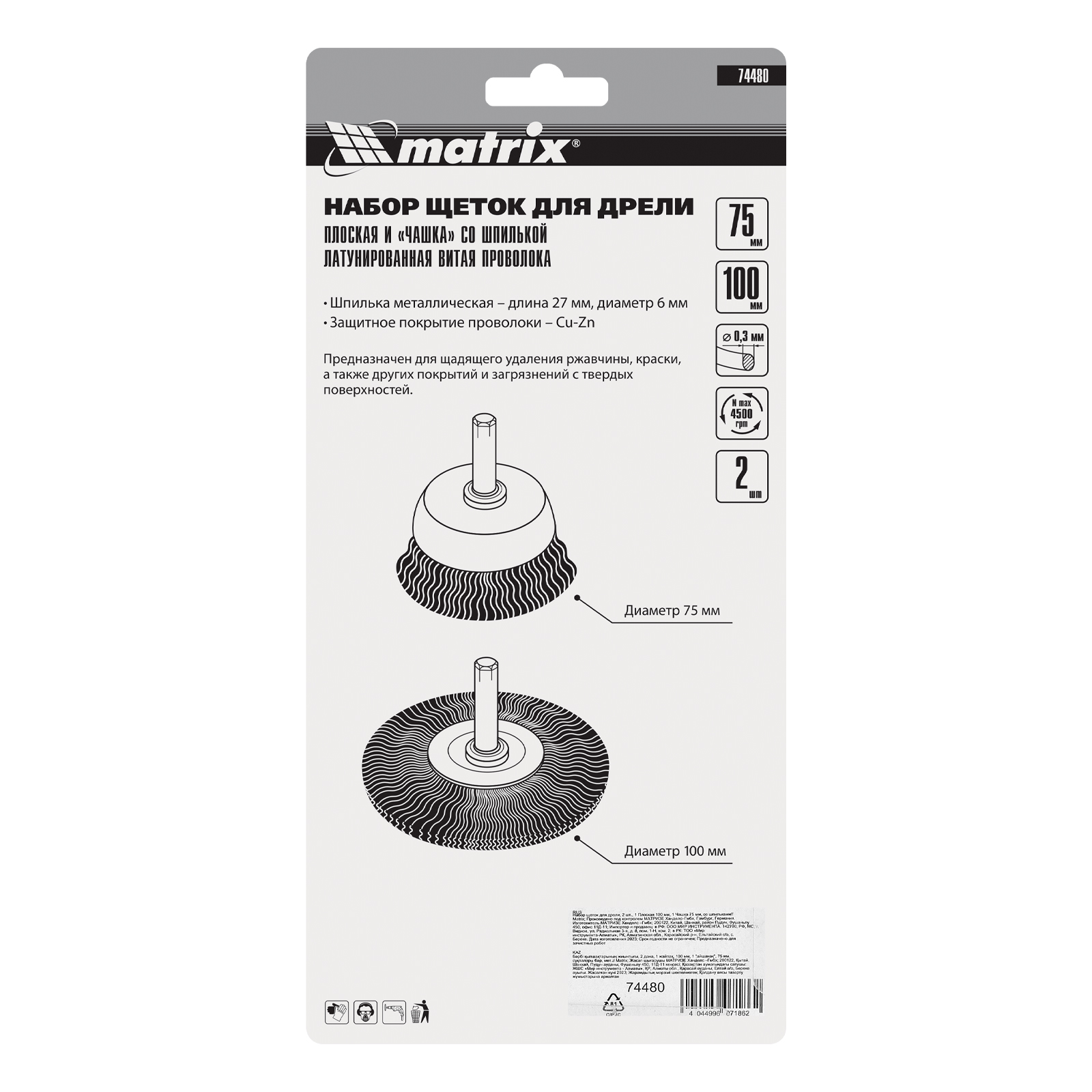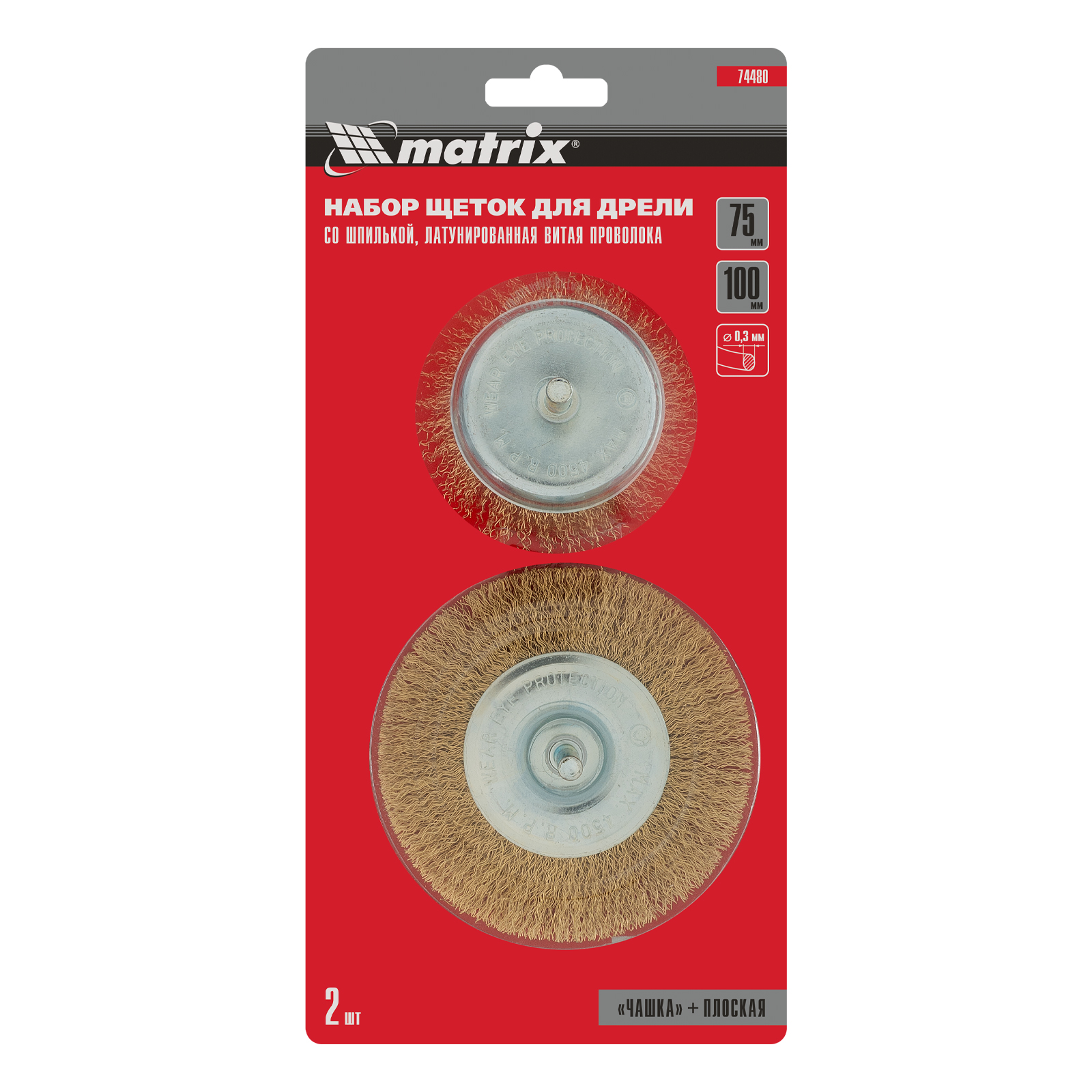 Набор щеток для дрели, 2 шт, 1 плоская, 100 мм, 1 "чашка", 75 мм, со шпильками Matrix в Санкт-Петербурге