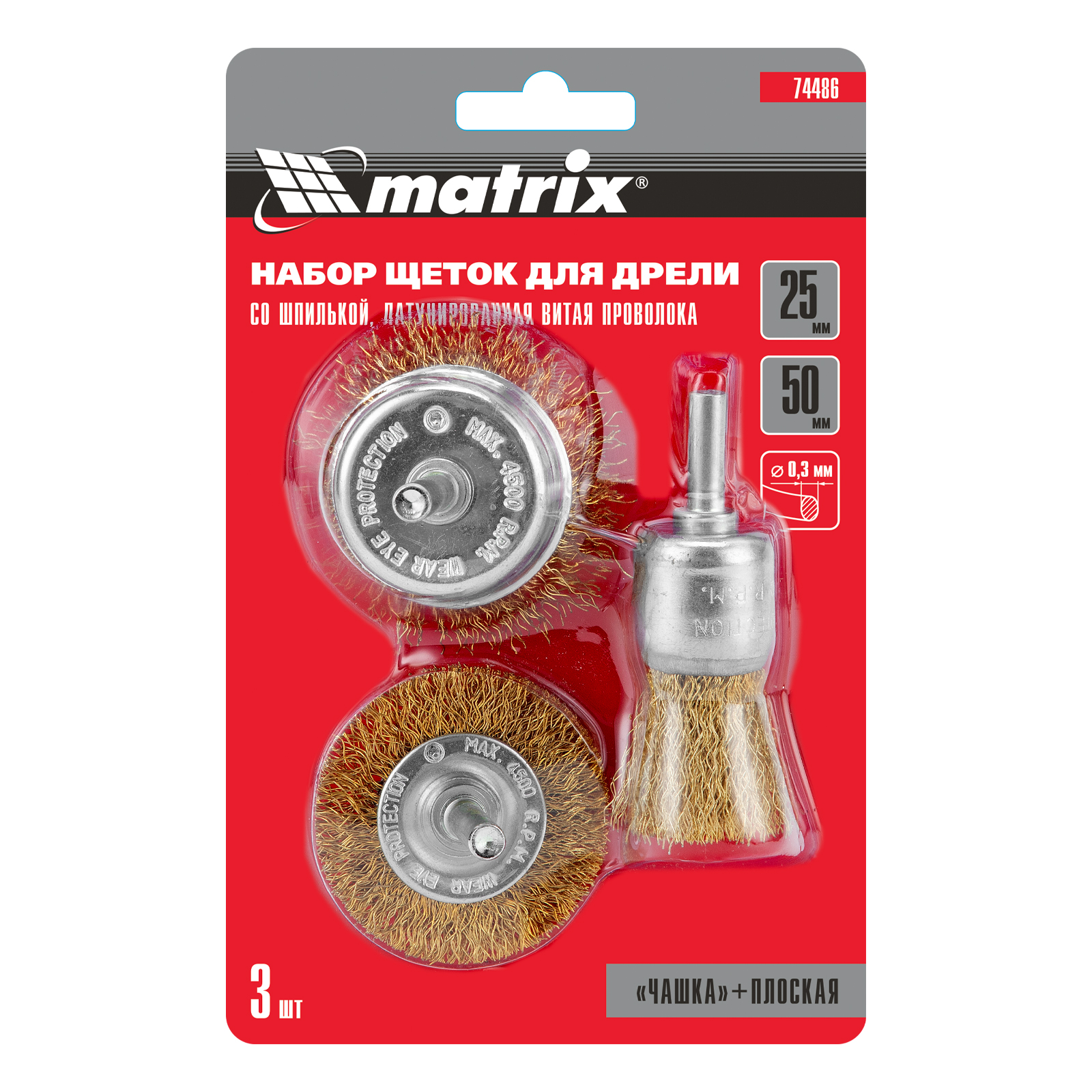 Набор щеток для дрели, 3 шт, 1 плоская, 50 мм, 2 "чашки", 25-50 мм, со шпильками Matrix в Санкт-Петербурге