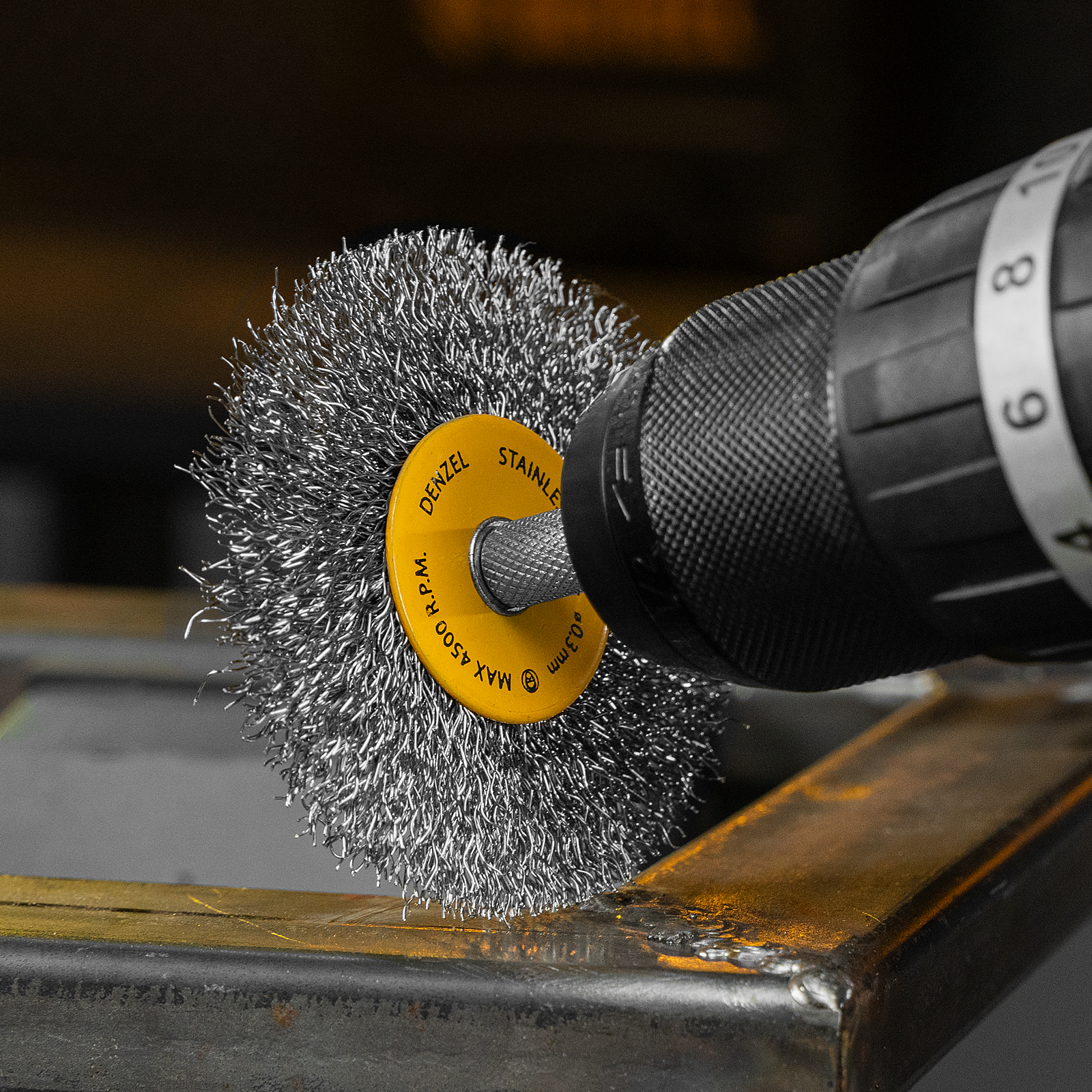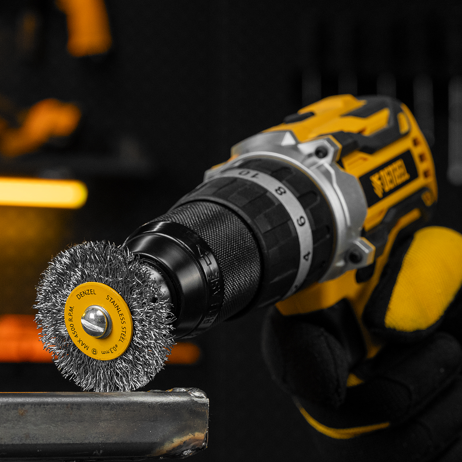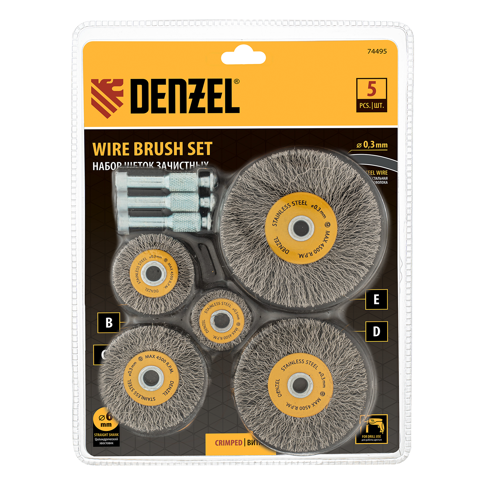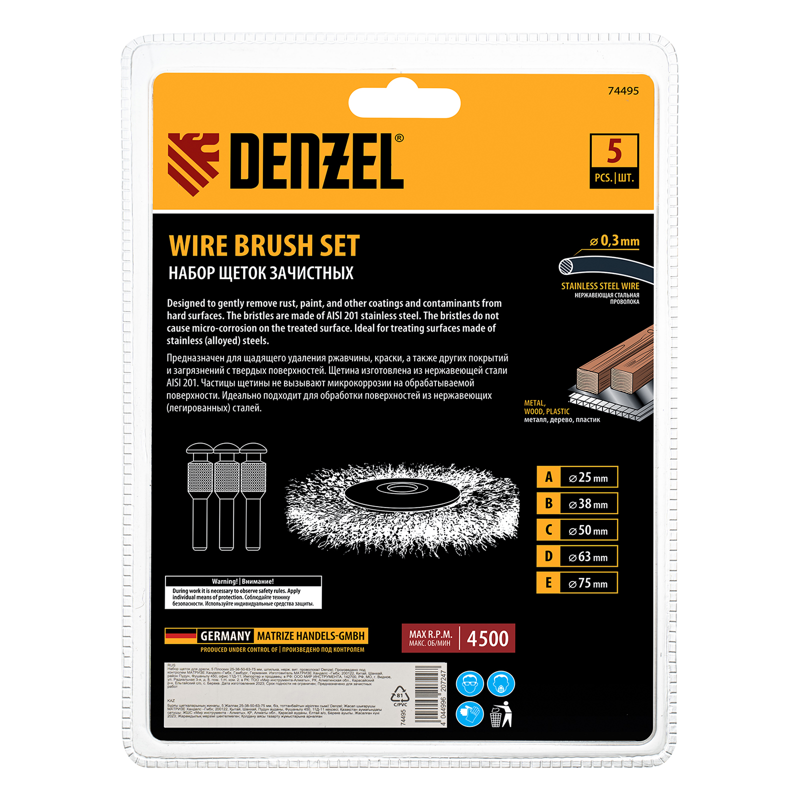 Набор щеток для дрели, 5 Плоских 25-38-50-63-75 мм, шпилька, нерж. вит. проволока Denzel в Санкт-Петербурге