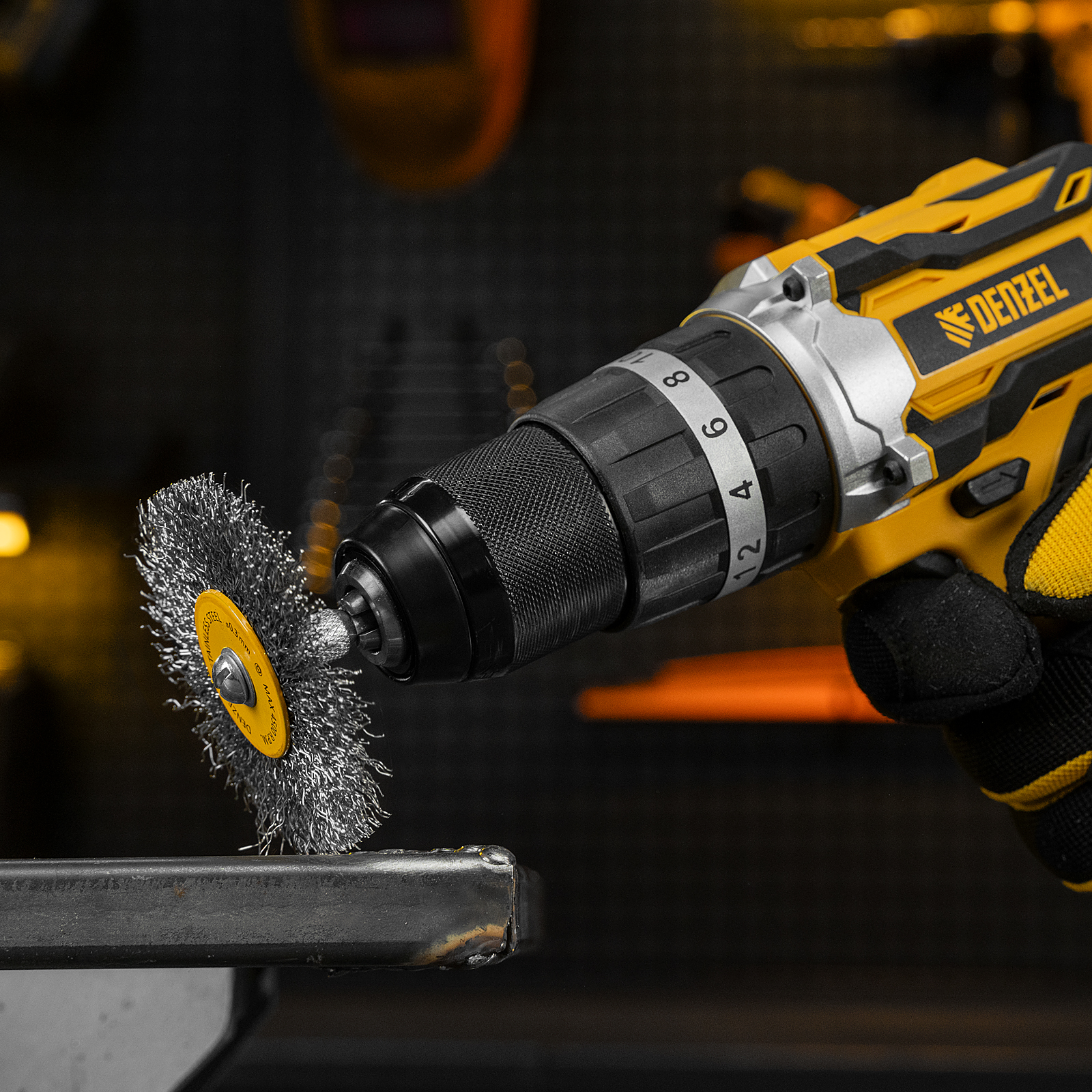 - Быстрая подготовка к работе — щетки имеют хвостовик диаметром 6 мм для установки в патрон дрели.
