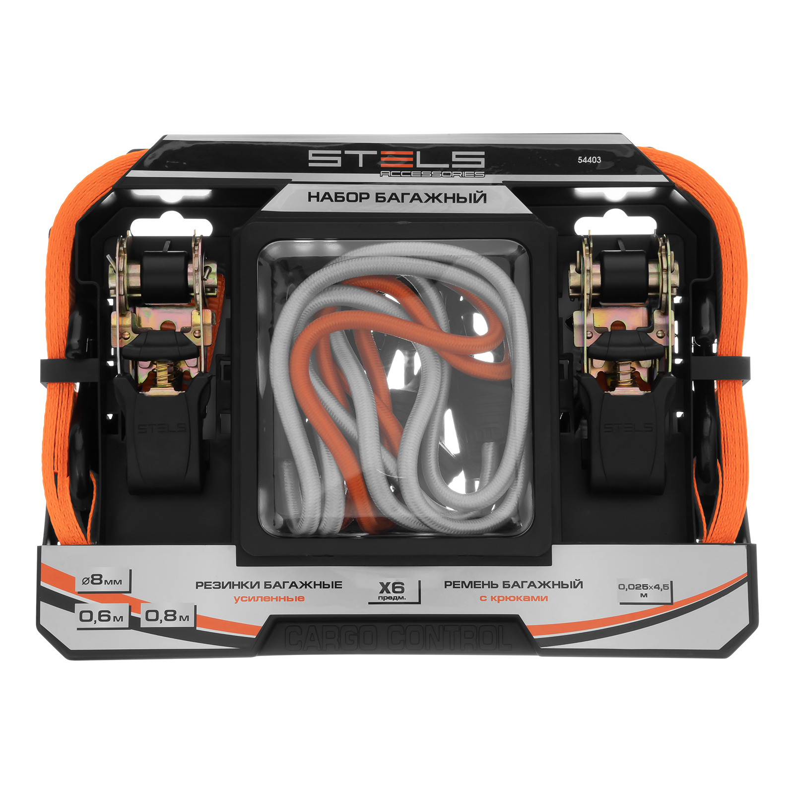 Набор стяжек и резинок Stels 54403 используется для фиксации грузов и будет полезен в автопутешествии. В комплекте ремни с храповыми механизмами, а также резинки разной длины с крюками. Разрывная нагрузка ремней составляет 680 кг, а эластичных стяжек — 50 кг, поэтому они надежно фиксируют предметы различных габаритов, предотвращая их смещение во время перевозки.