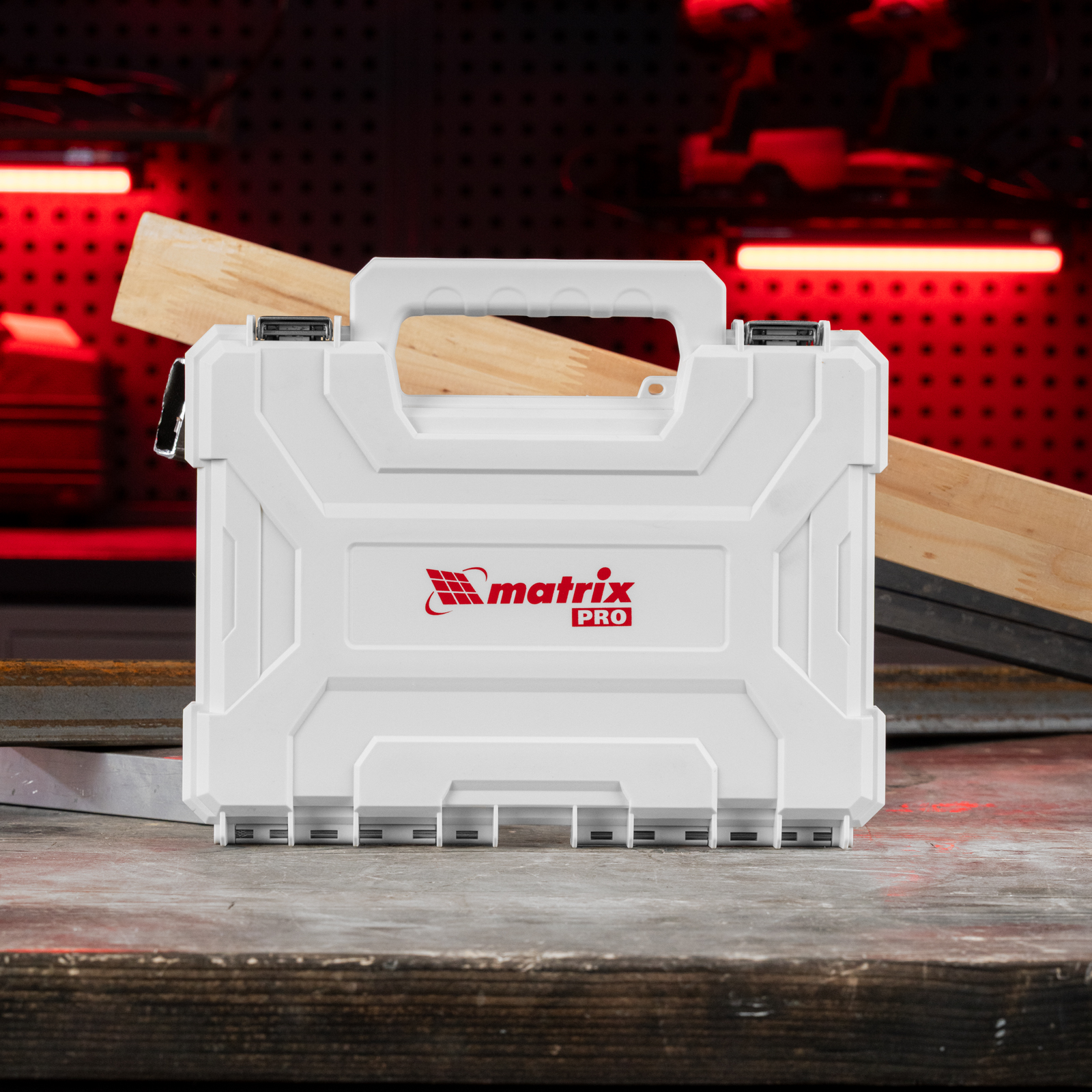 Комбинированный набор Matrix 725650 — универсальное решение для мастеров, т. к. он содержит 50 предметов: отверточные биты (20 шт.) и адаптер к ним, зенковку, 2 торцевые головки, калибровочную шкалу, сверла по дереву 4-10 мм, сверла перовые 16-25 мм, сверла по бетону 4-8 мм и сверла по металлу 1-6,5 мм. Оснастка подходит как для бытового использования, так и решения профессиональных задач.