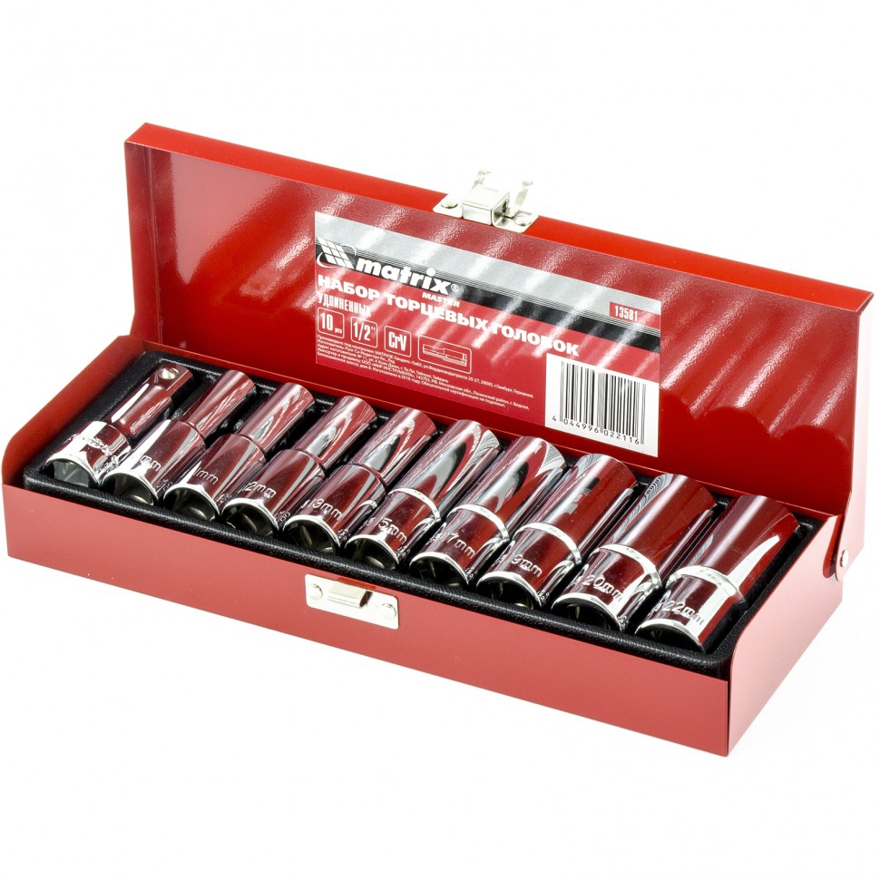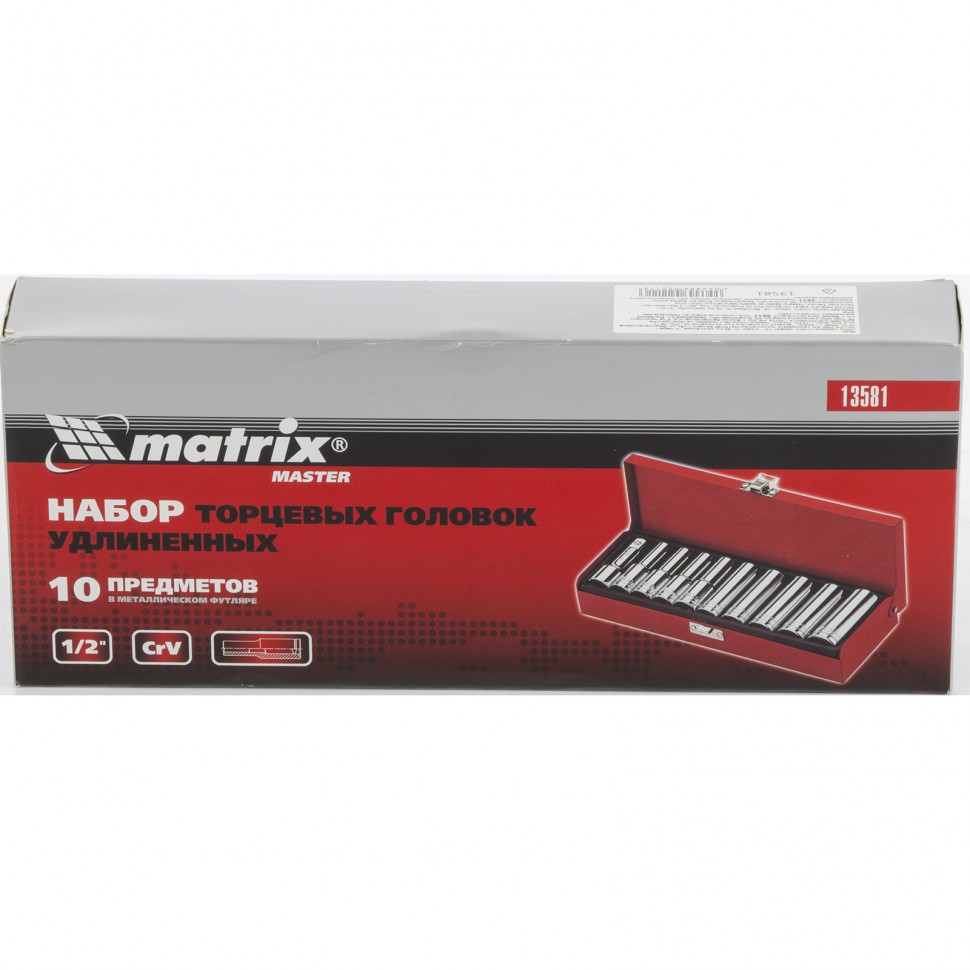 Набор торцевых головок 1/2", головки 10 - 22 мм, удлиненные, 10 предметов Matrix
