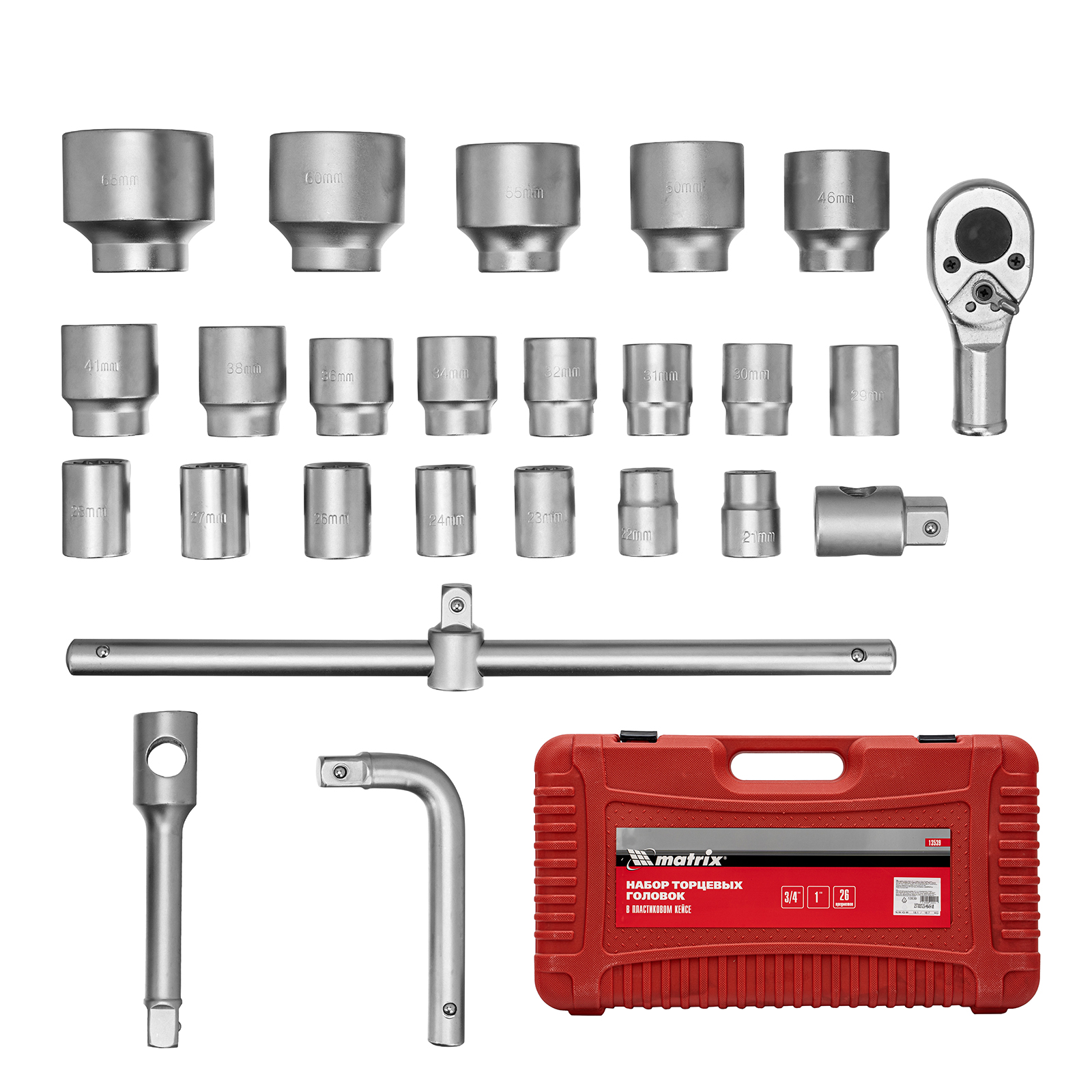 Набор торцевых головок 3/4"–1", головки 21 х 65 мм, 26 предметов, в пласт. боксе Matrix