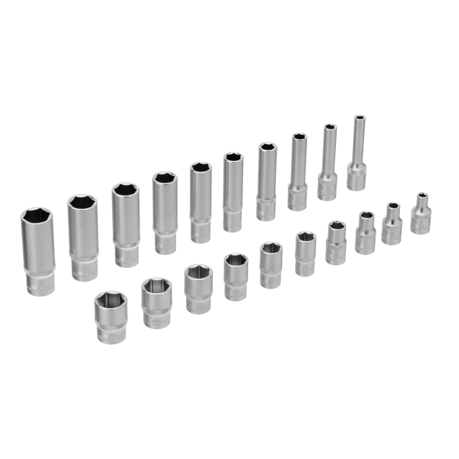 Ключ трещоточный - 1 штКардан - 1 штУдлинители 50, 100 - 2 штАдаптеры - 2 штГоловки 4, 5, 6, 7, 8, 9, 10, 11, 12, 13 - 10 штГоловки удлиненные 4, 5, 6, 7, 8, 9, 10, 11, 12, 13 - 10 штКейс - 1 шт |