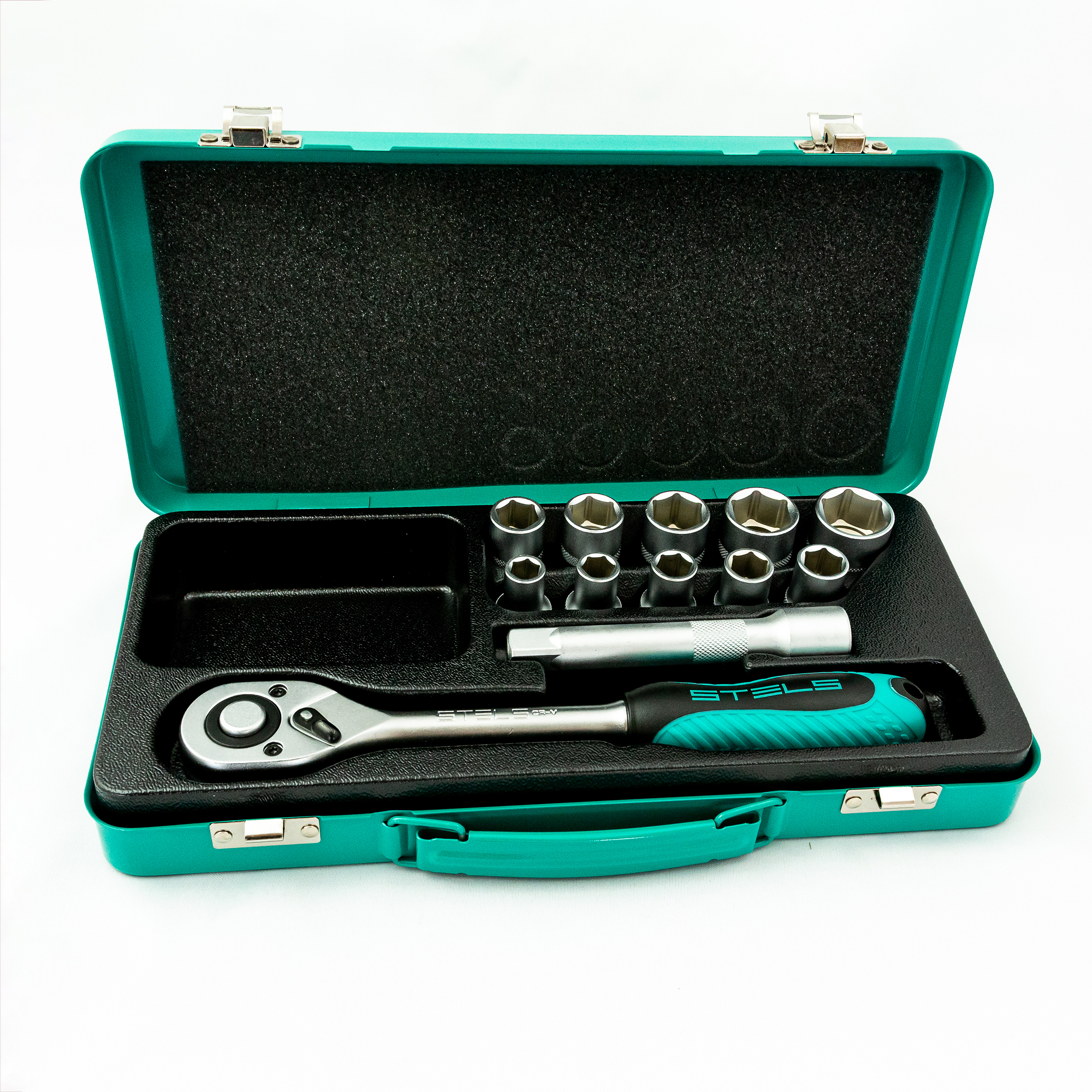 Набор торцевых головок, 1/2, головки 10 - 24 мм, с трещоточным ключом, 12 предметов Stels