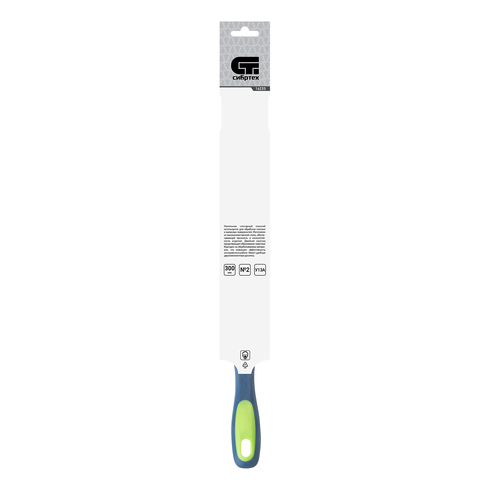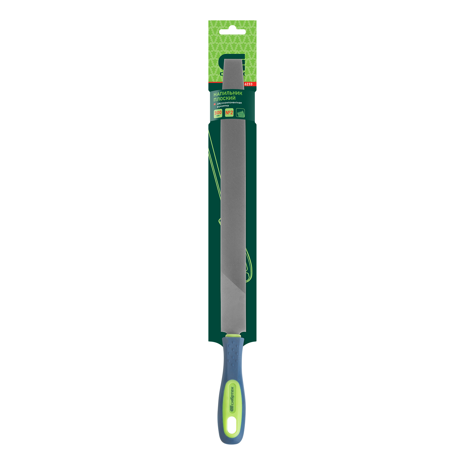 Напильник, 300 мм, плоский, двухкомпонентная рукоятка, №2 Сибртех