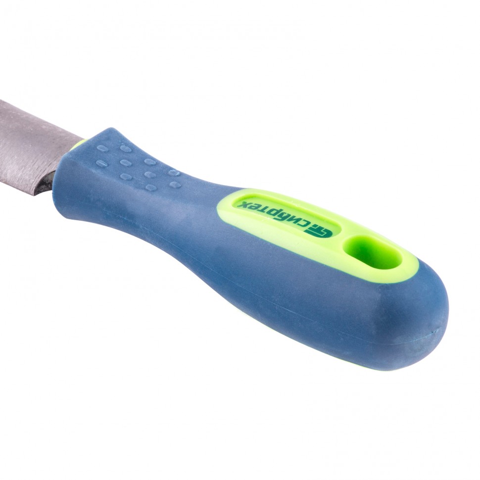 - Удобное хранение — в рукоятке имеется отверстие для подвешивания напильника.