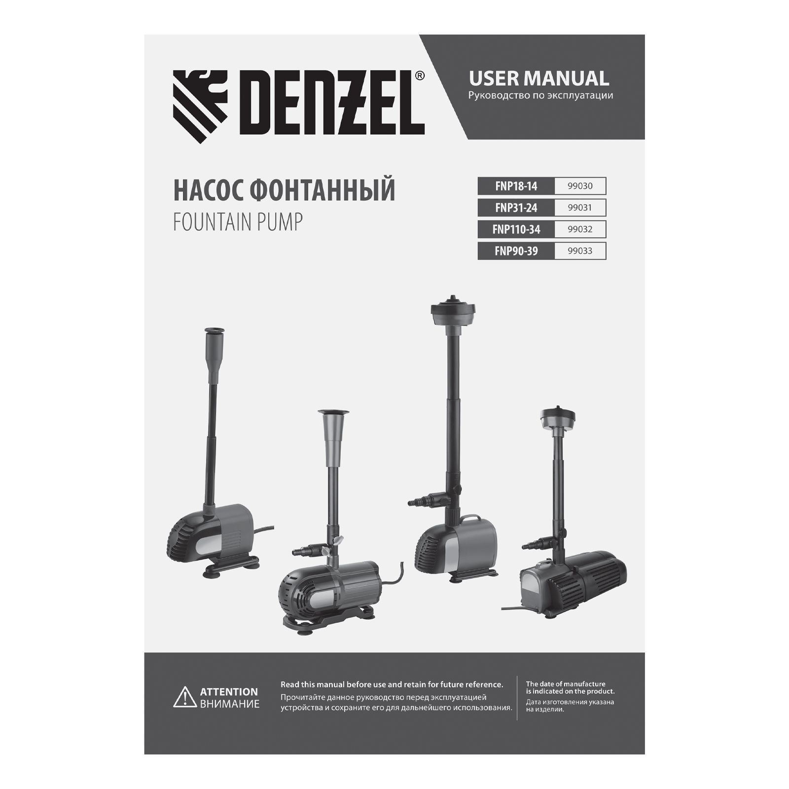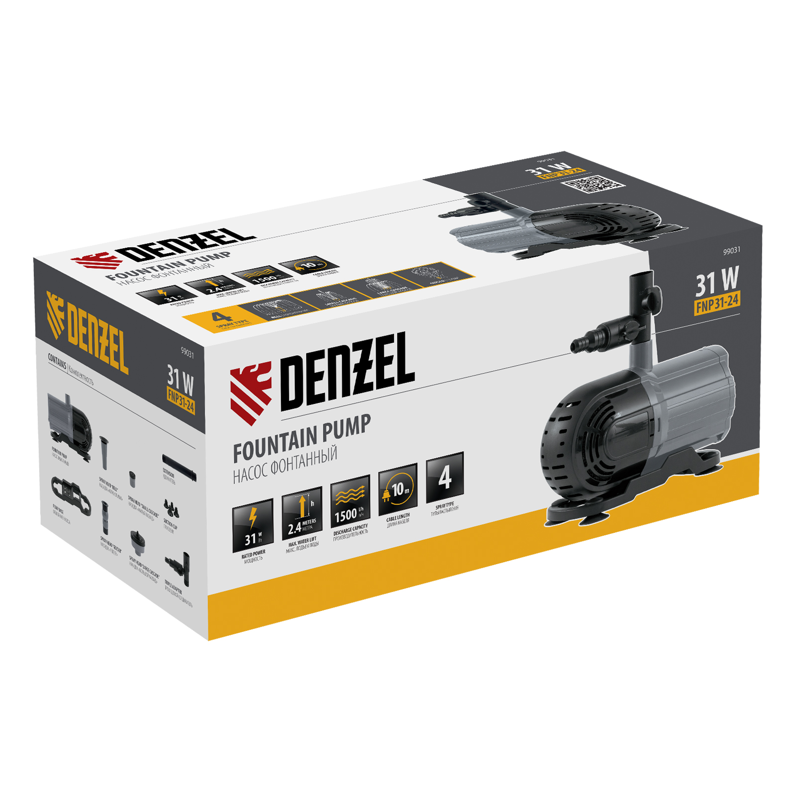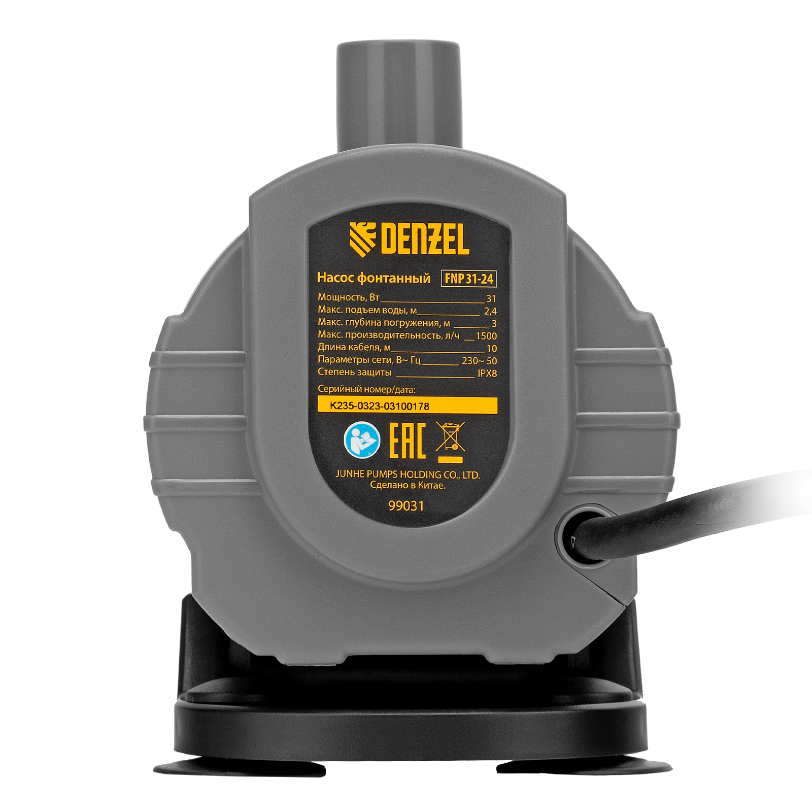 Насос фонтанный FNP31-24, 31 Вт, подъем 2,4 м, 1500 л/ч, колокольчик/2 каскада/гейзер Denzel в Санкт-Петербурге