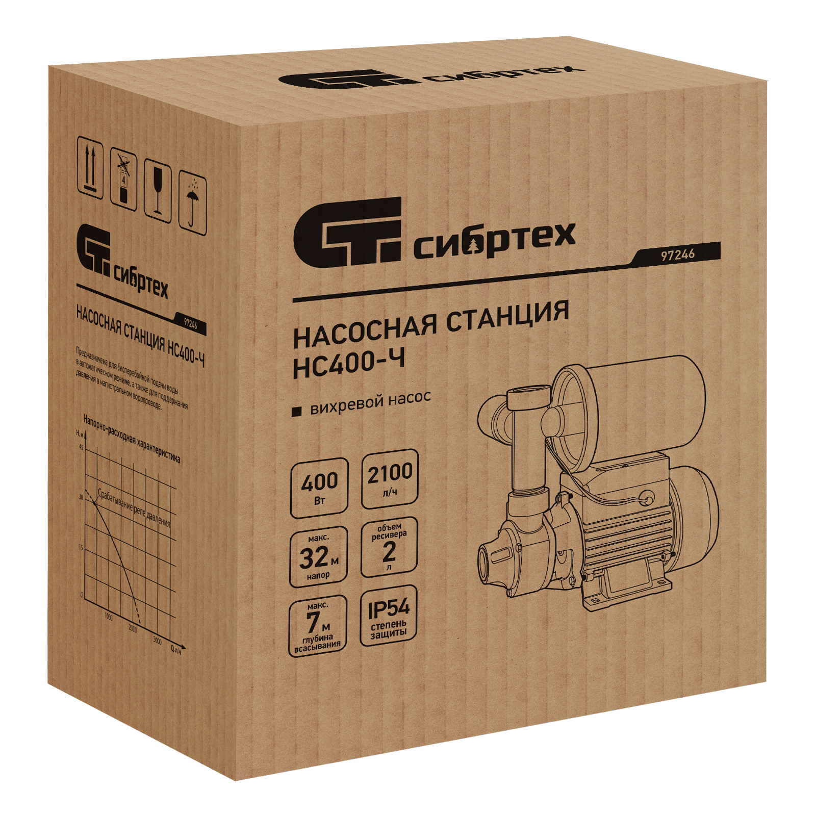 Насосная станция НС400-Ч, 400 Вт, напор 32 м, 2100 л/ч, ресивер 2 л Сибртех в Санкт-Петербурге