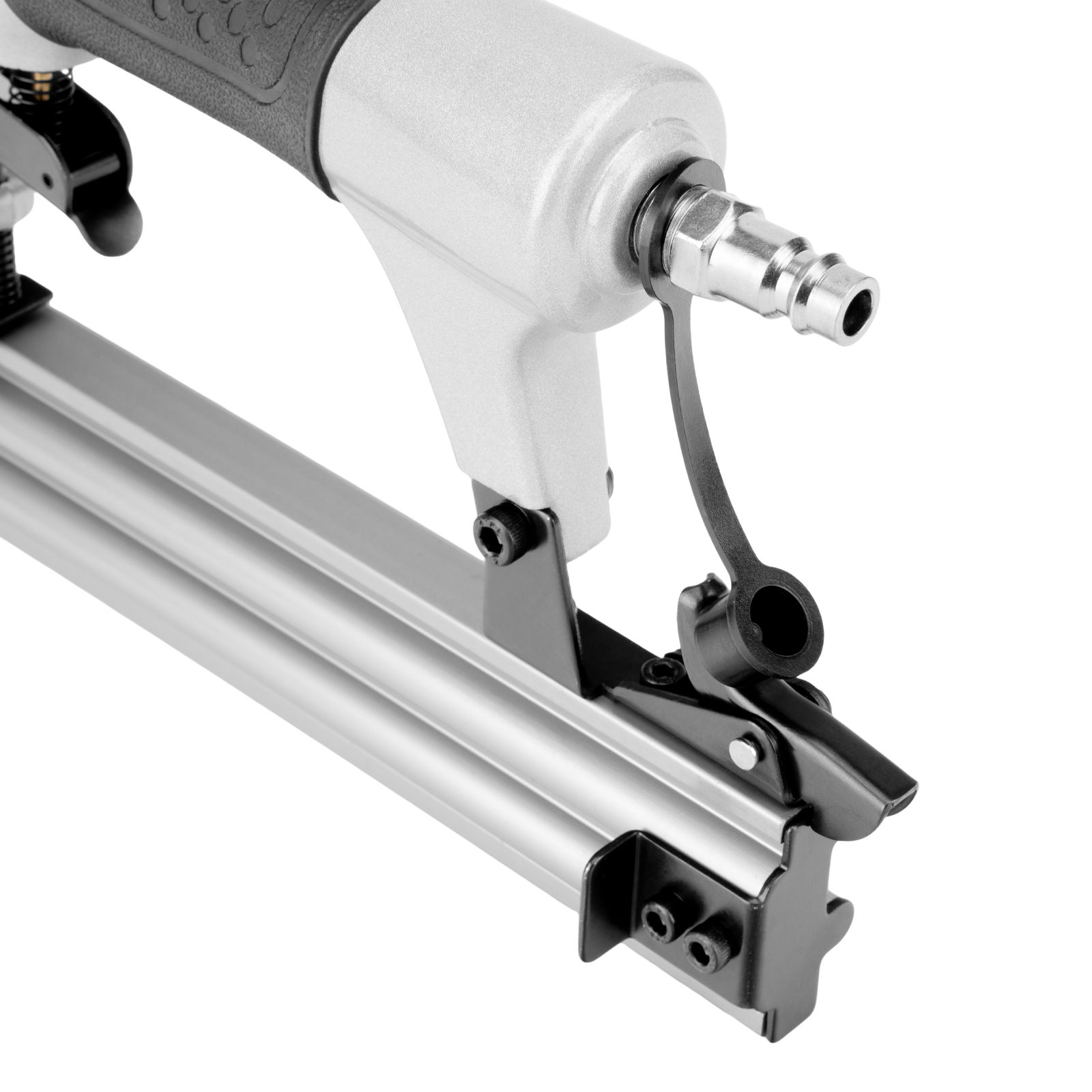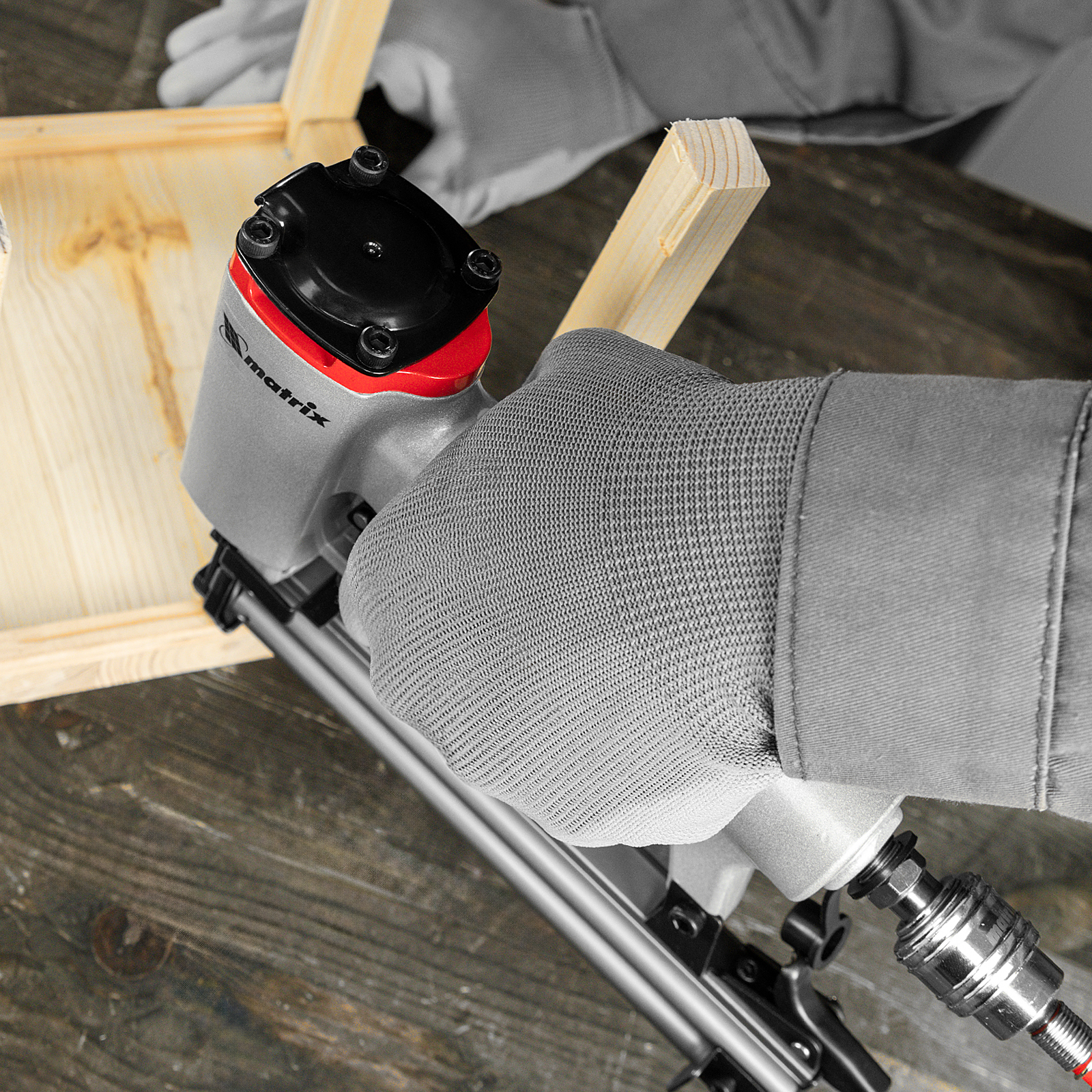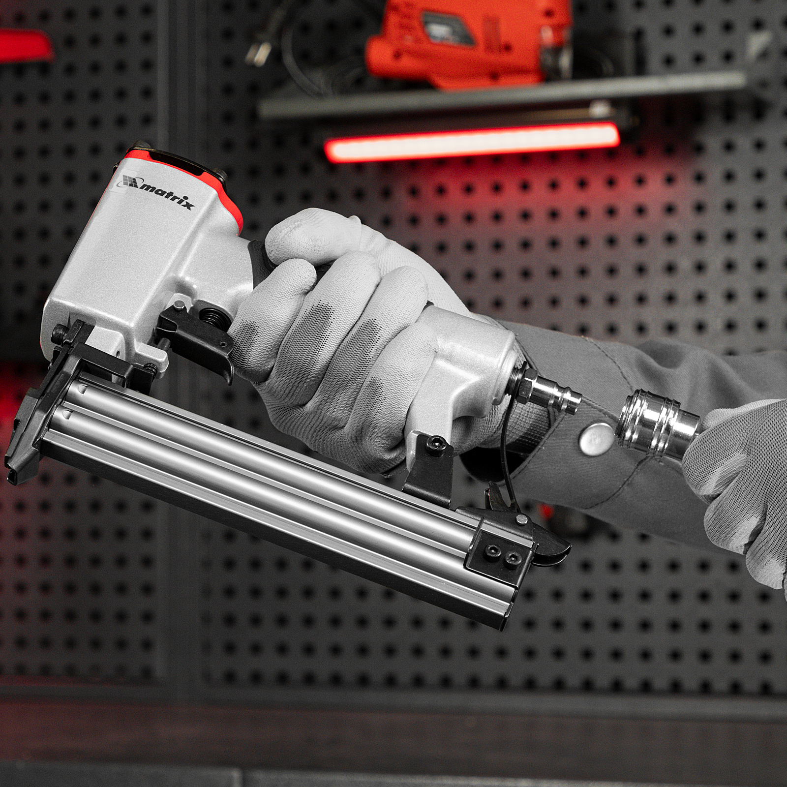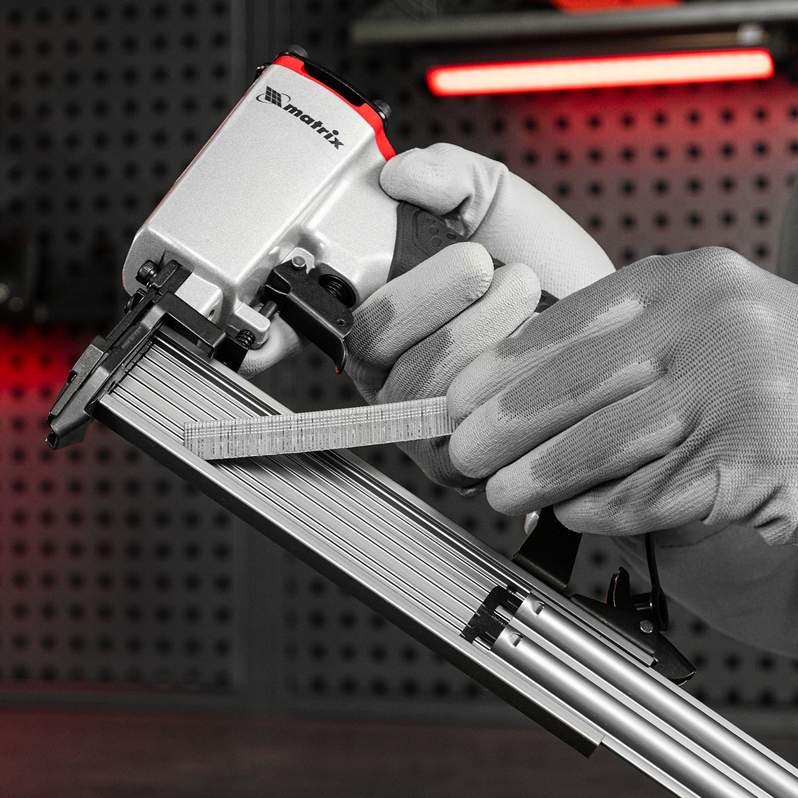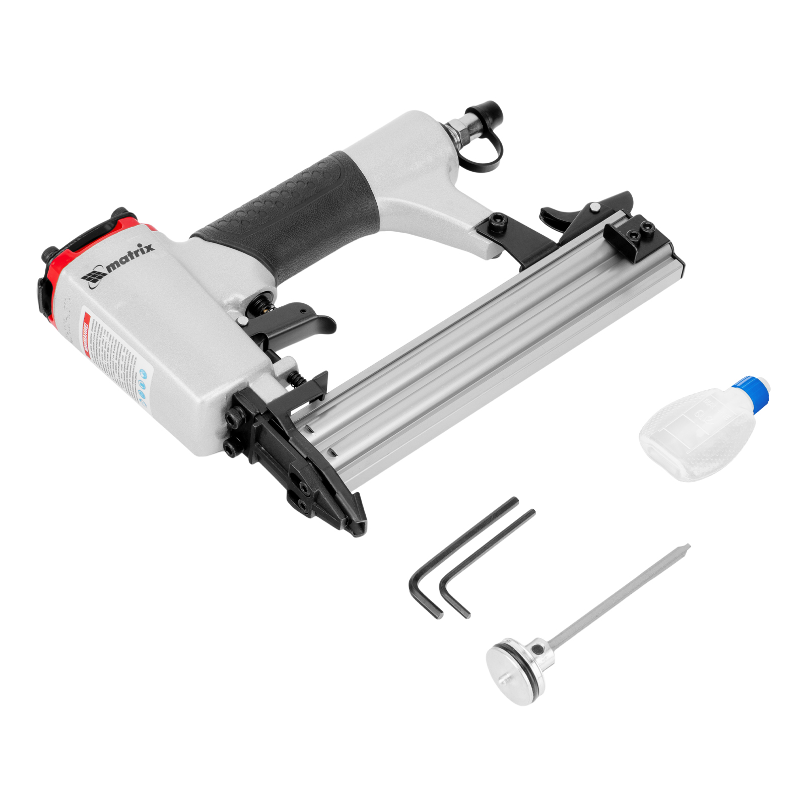 Пневматический нейлер Matrix 57405 предназначен для гвоздей 18GA длиной от 10 до 32 мм. Применяется во время строительства и ремонта, кровельных работ и производства мебели. С помощью нейлера можно закрепить паркетную доску, фанеру, ДВП, шифер, гипсокартон, ткань и бумагу.