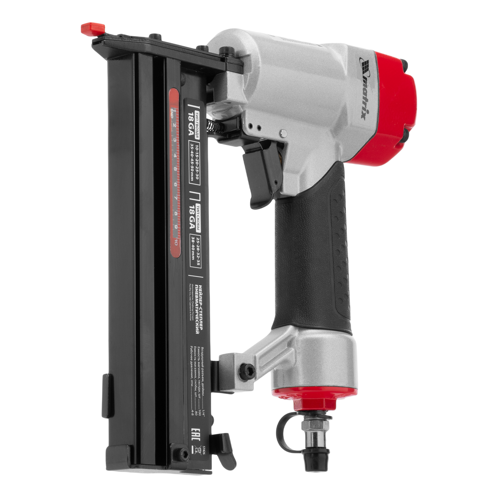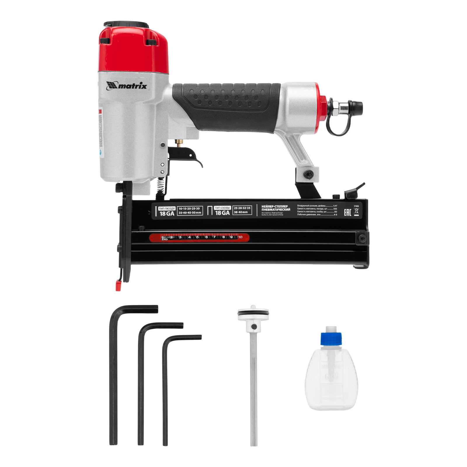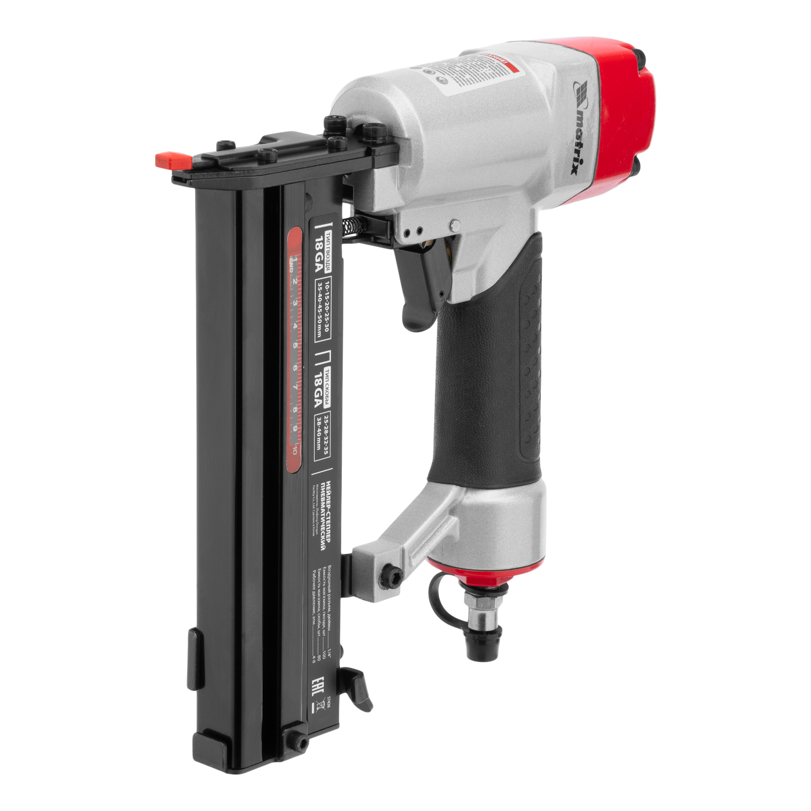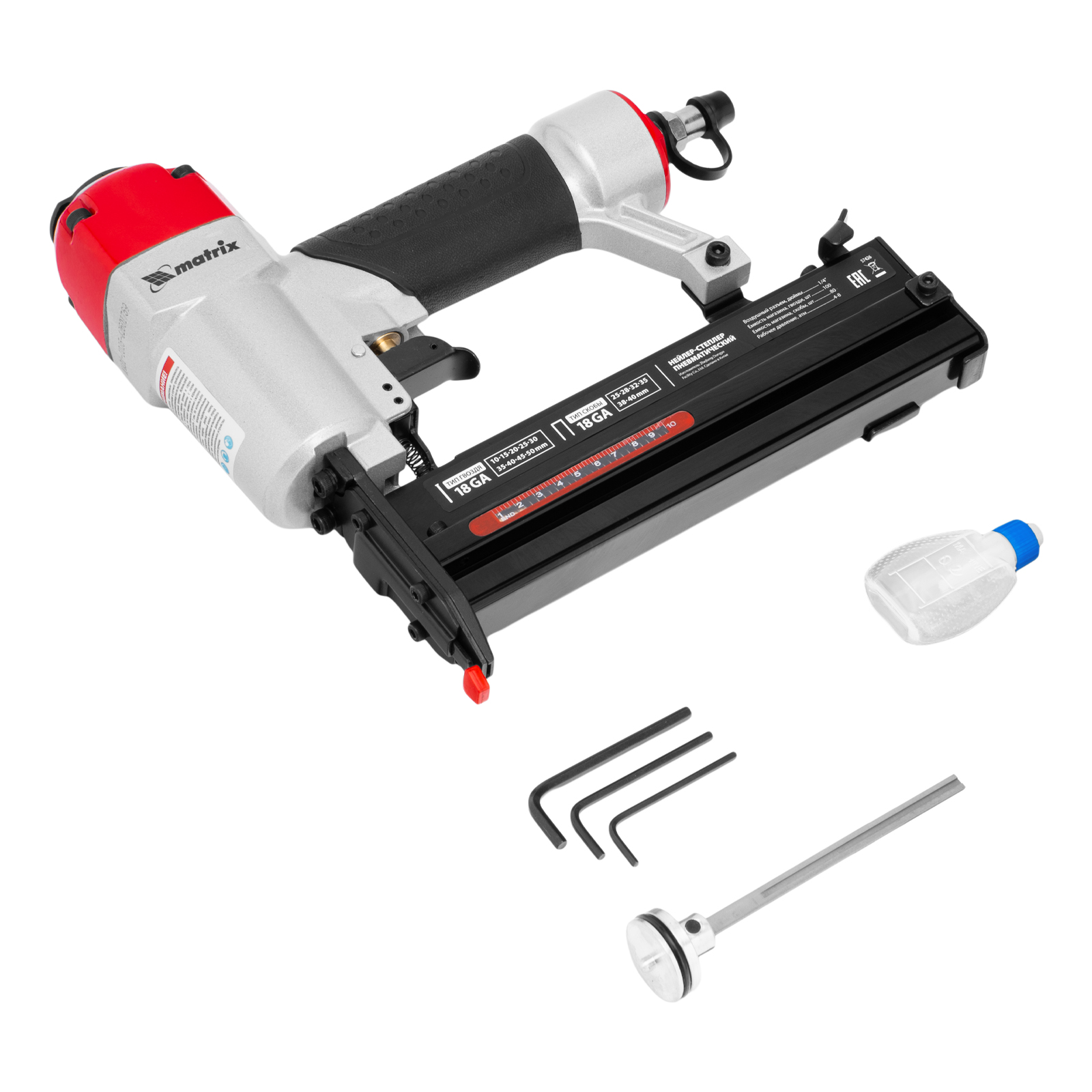 Нейлер-степлер пневматический 2 в 1, гвозди 18GA длина 10-50 мм, скобы 18GA длина 25-40 мм Matrix