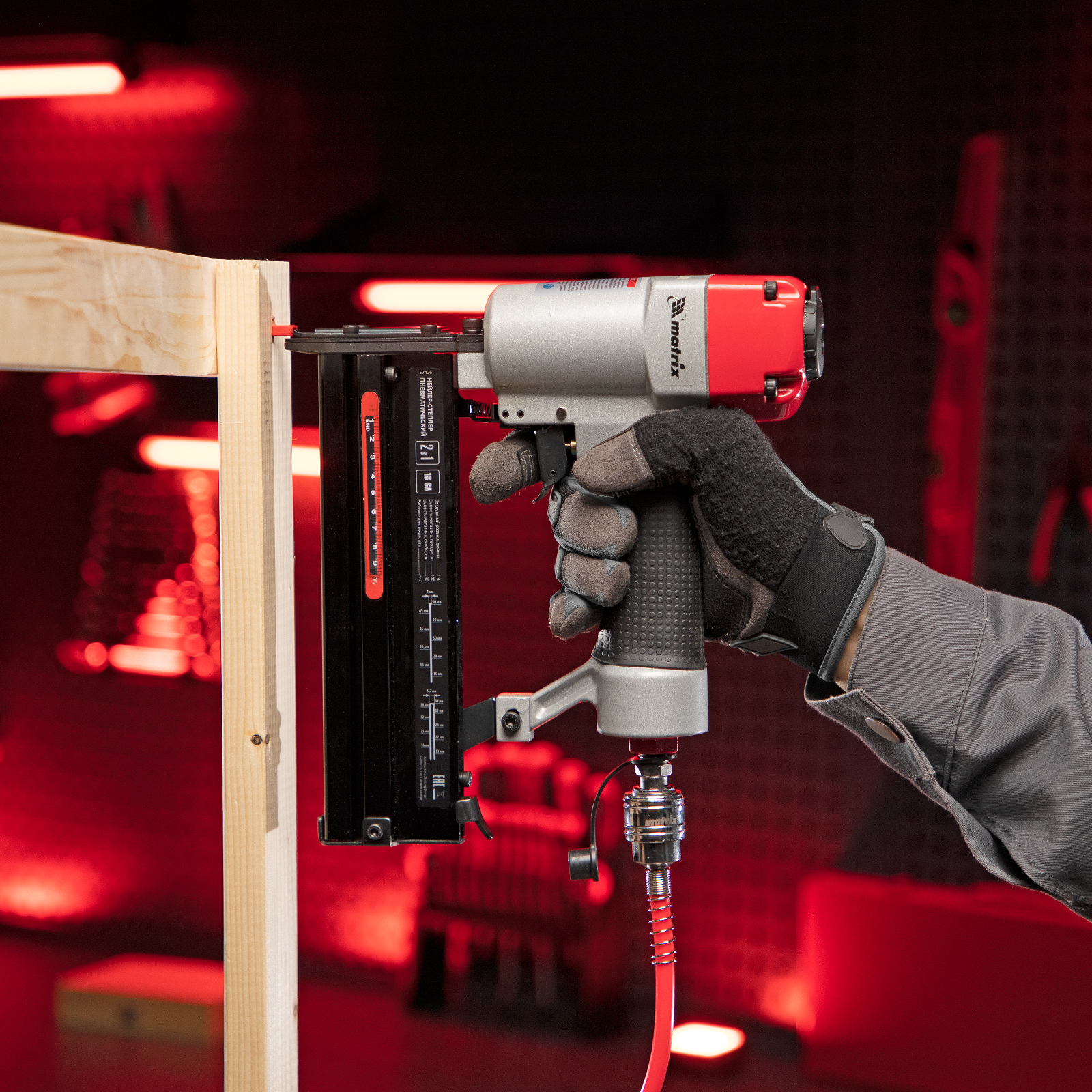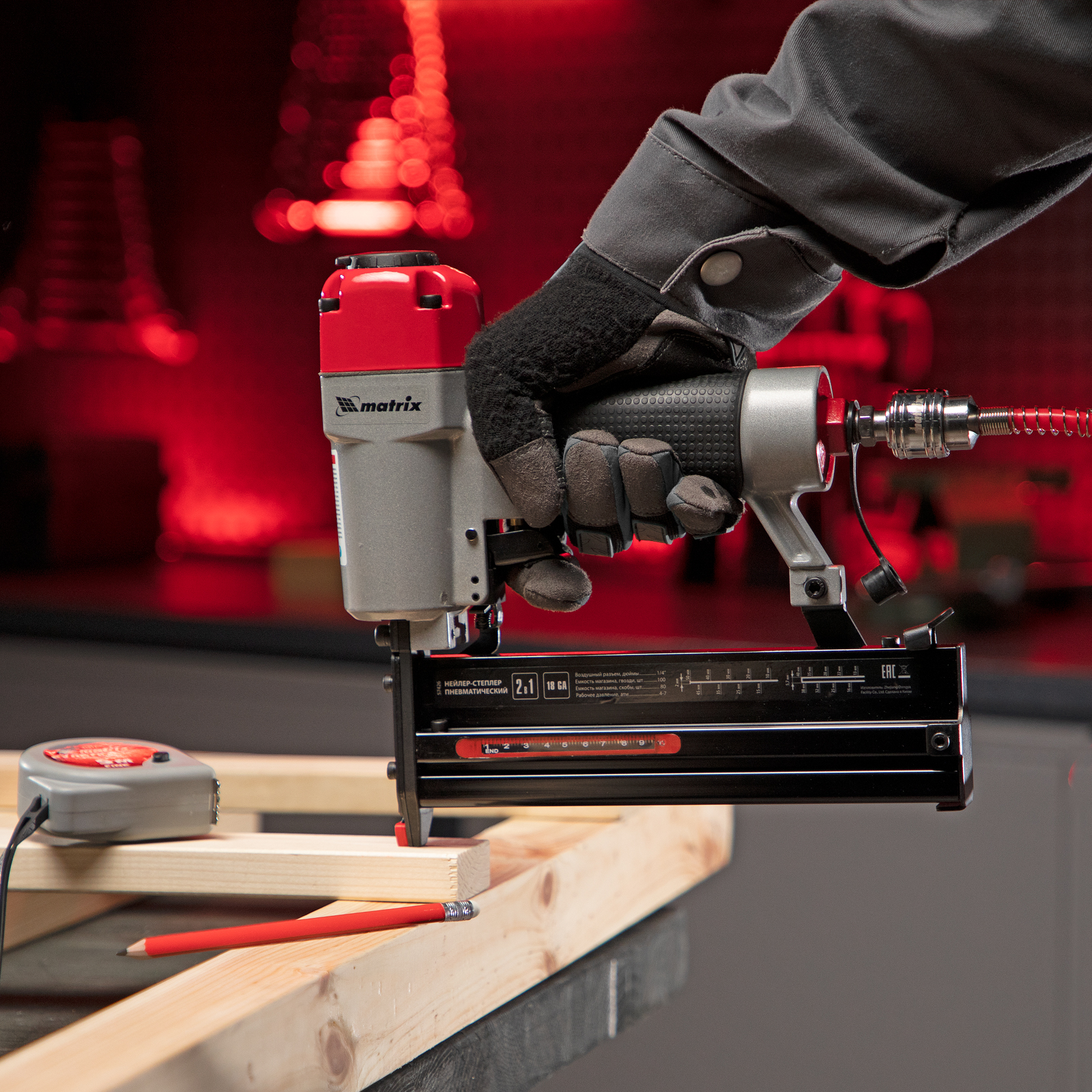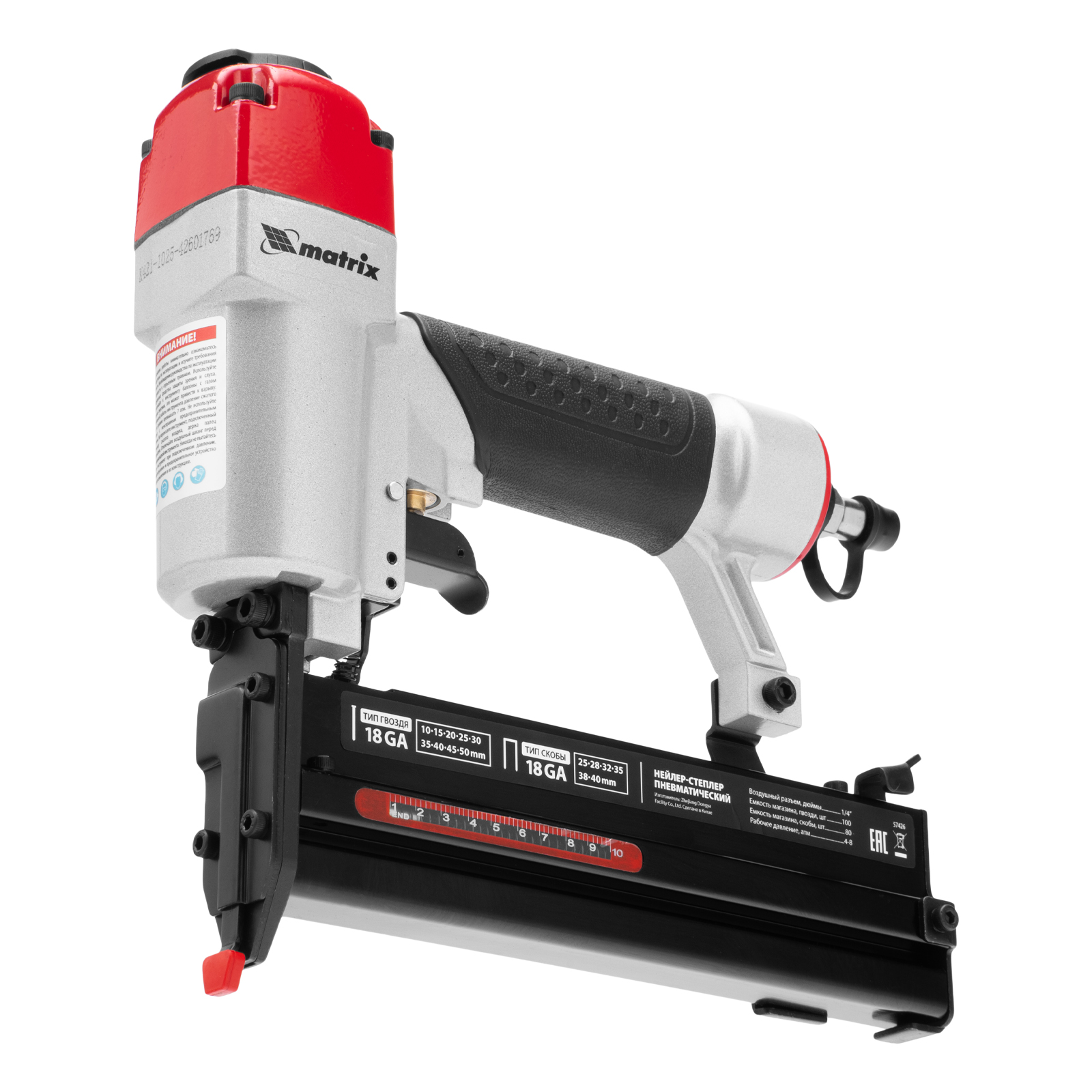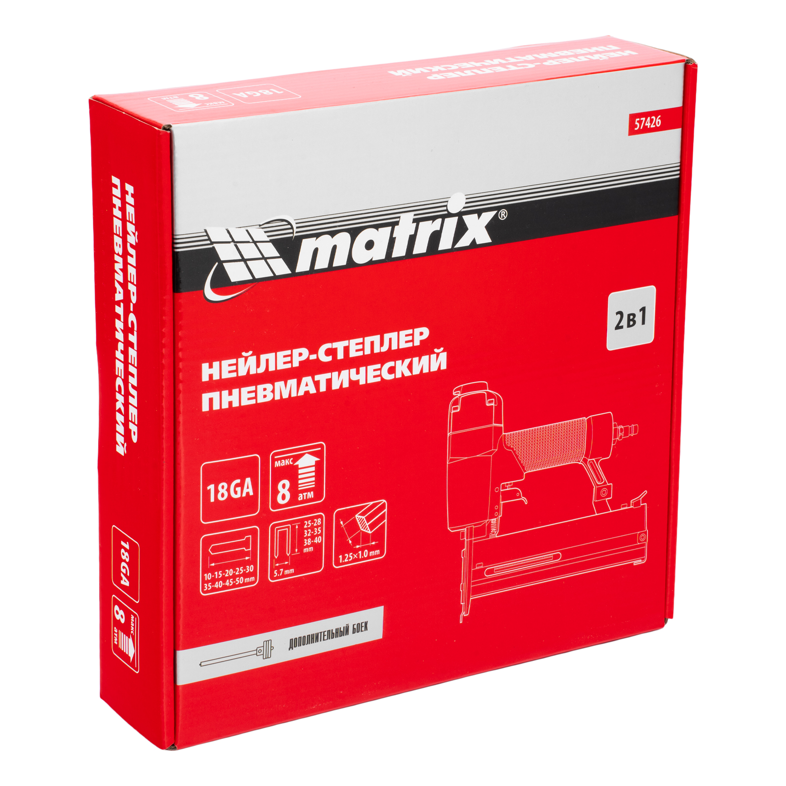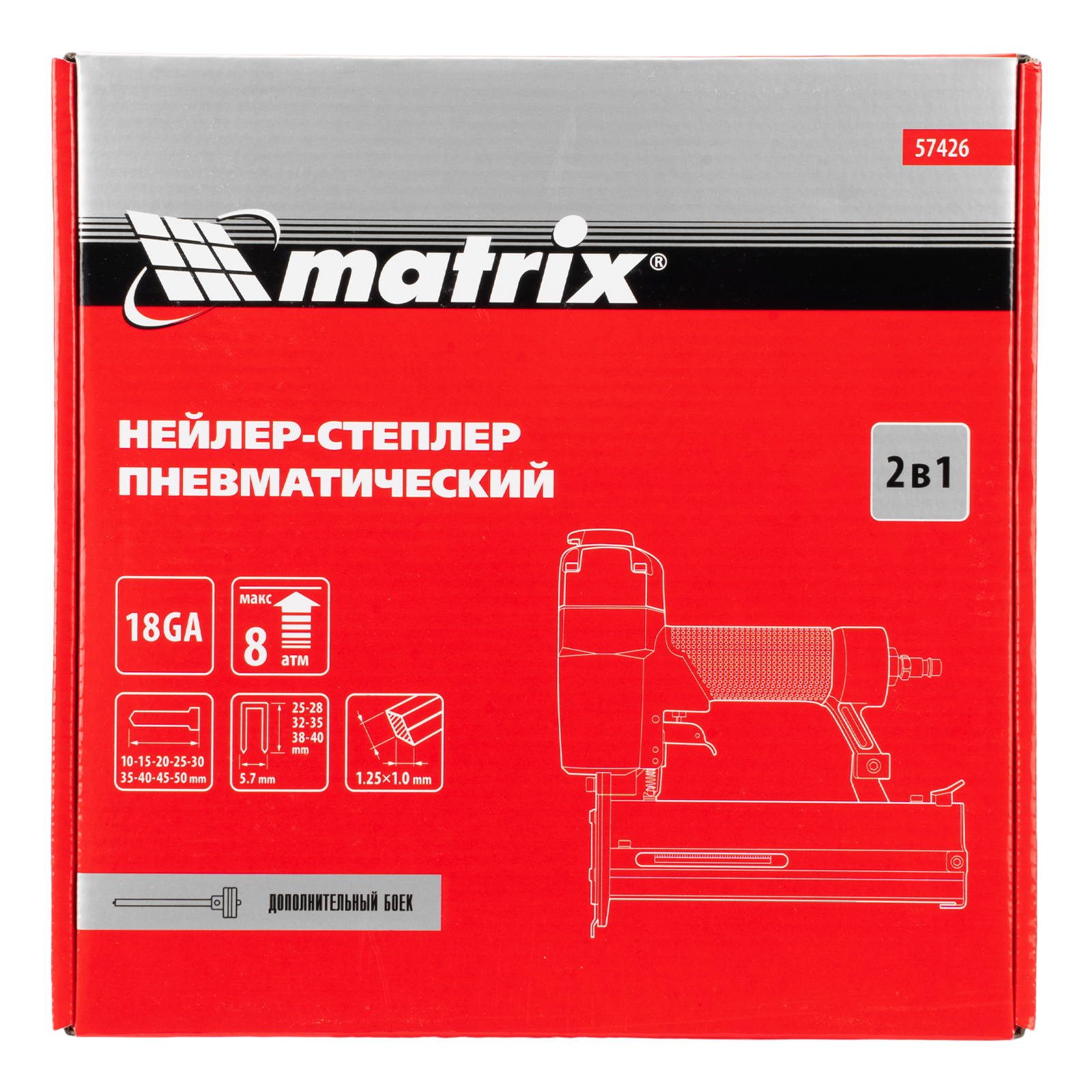 Нейлер-степлер пневматический 2 в 1, гвозди 18GA длина 10-50 мм, скобы 18GA длина 25-40 мм Matrix