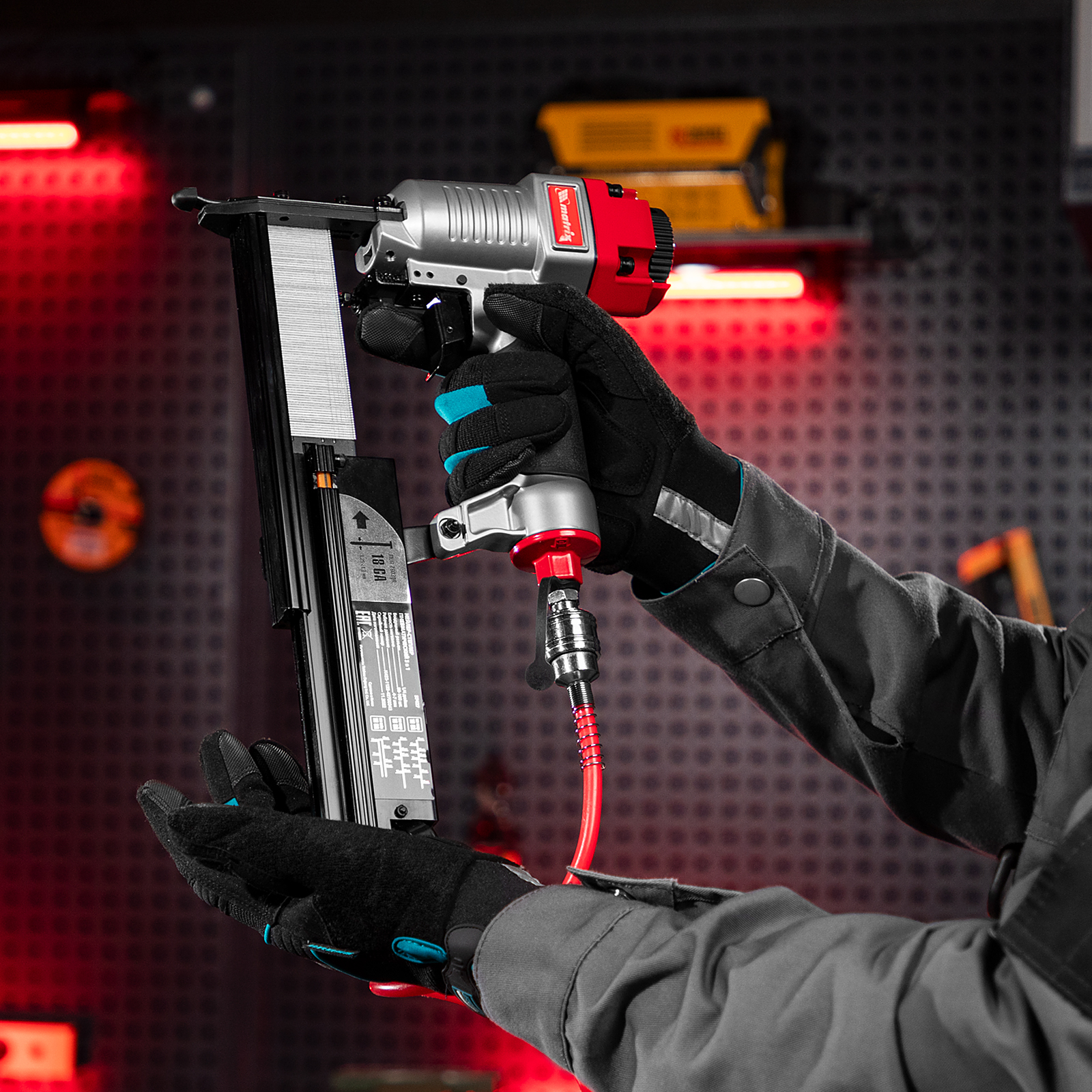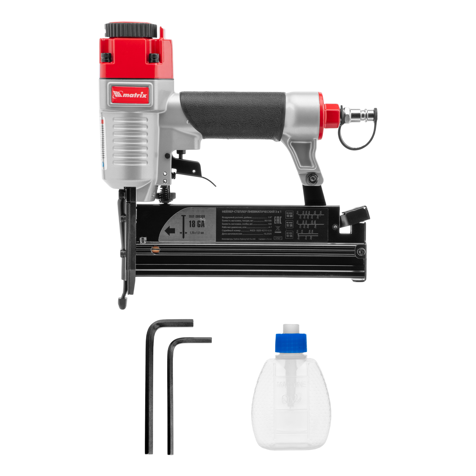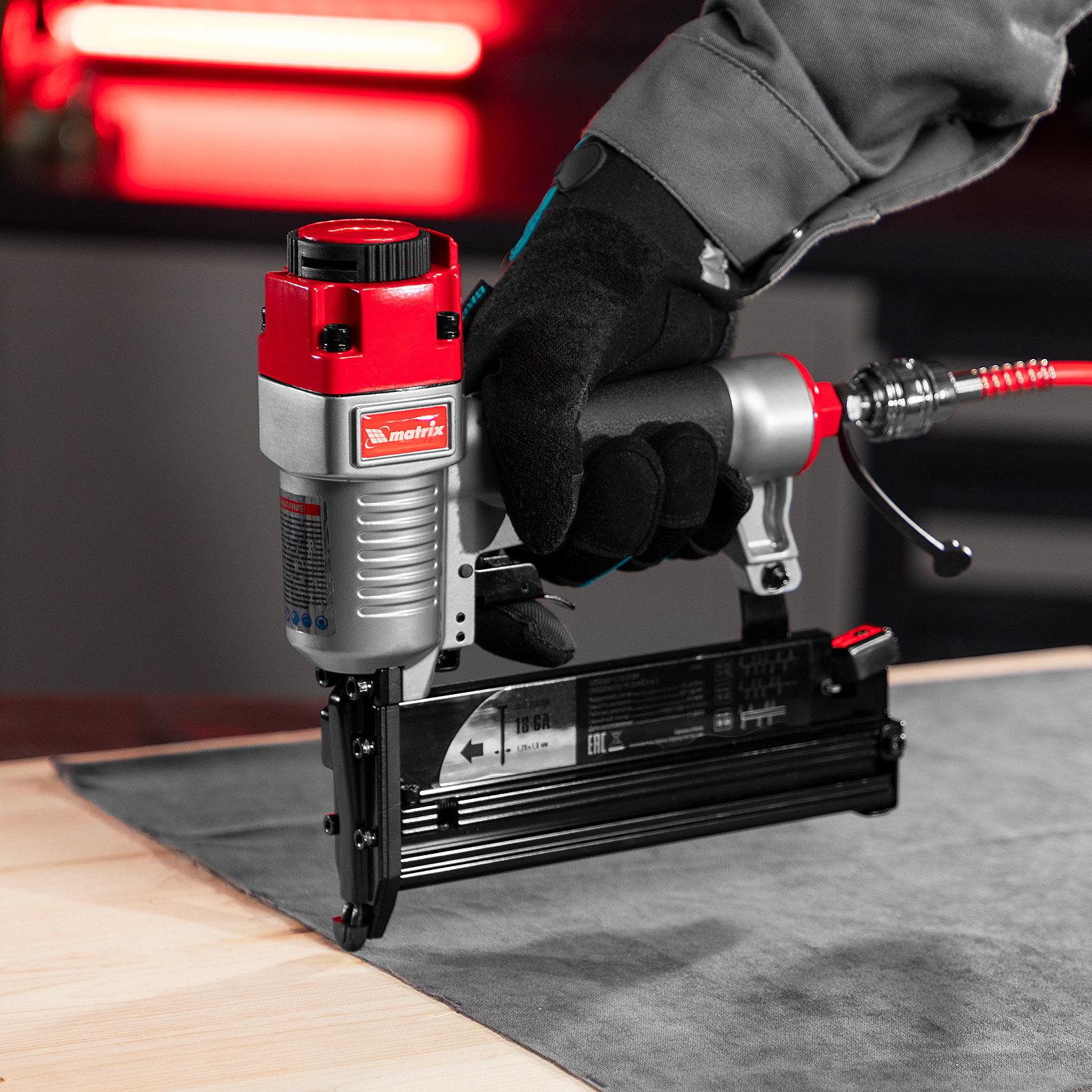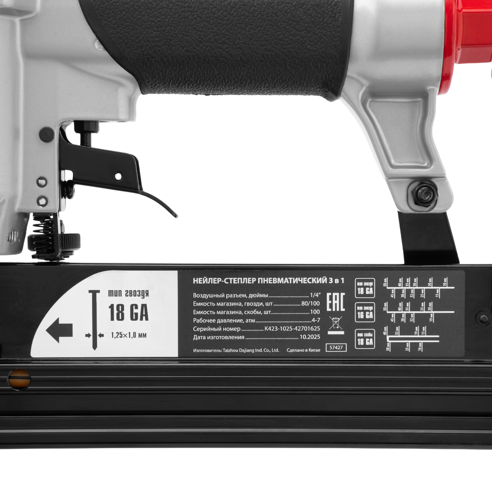• Малый вес 1,33 кг — длительная работа со степлером-нейлером не вызывает дискомфорт.