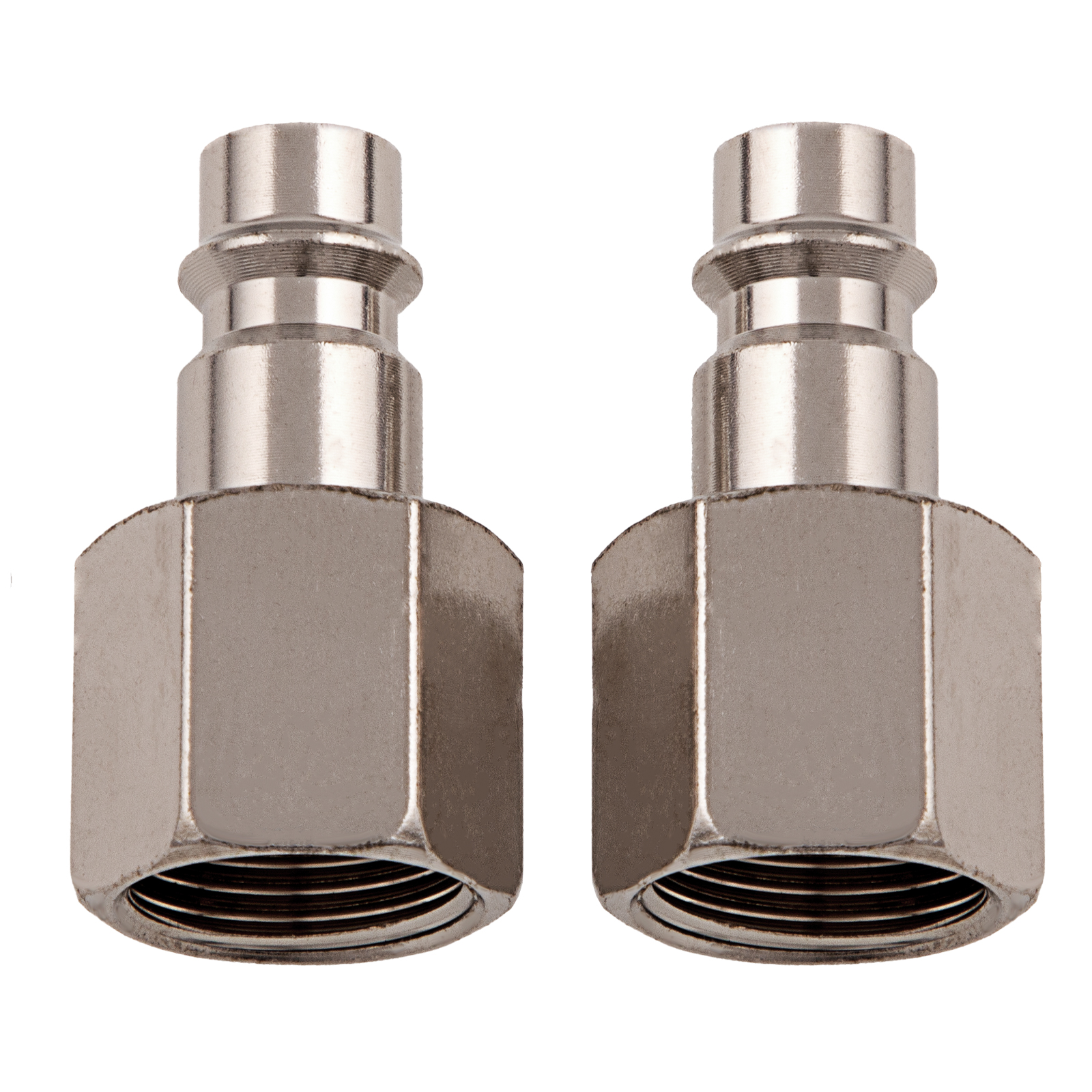 Универсальный быстросъемный ниппель Stels 57060, 2 шт. в упаковке, предназначен для перехода с внутренней резьбы 3/8 дюйма на рапид типа «папа» для монтажа пневматических линий. Используется для работы с пневмоинструментом, будет полезен на строительной площадке, в гараже и автосервисе.