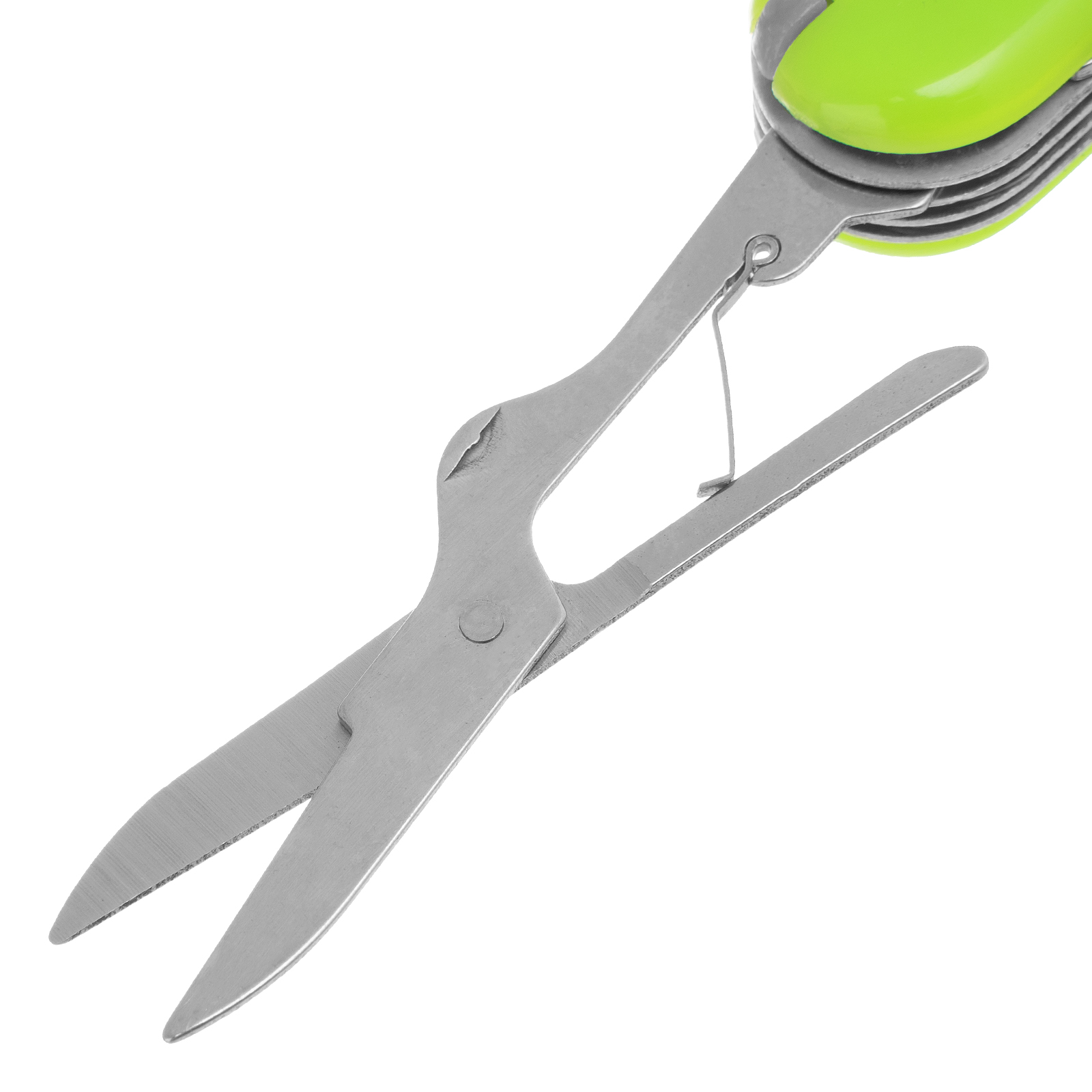 Многофункциональный нож Сибртех 17626 компактного размера, длиной 90 мм, способен выполнять 15 функций и заменяет собой целый набор инструментов. Будет полезен на рыбалке, т.к. включает приспособления для чистки рыбы и удаления крючков. Пригодится также на пикнике, в походе, поездке и на охоте.