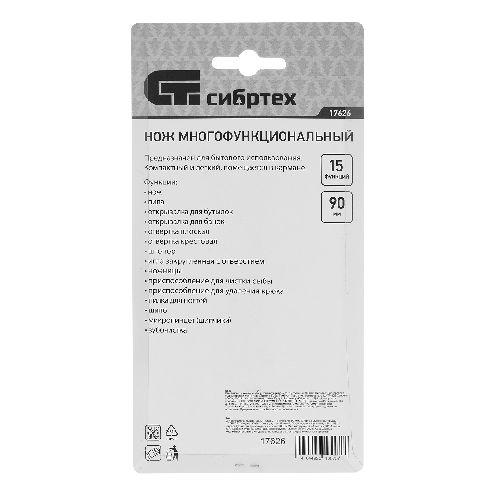 Нож многофункциональный, компактный размер, 15 функций, 90 мм Сибртех в Санкт-Петербурге
