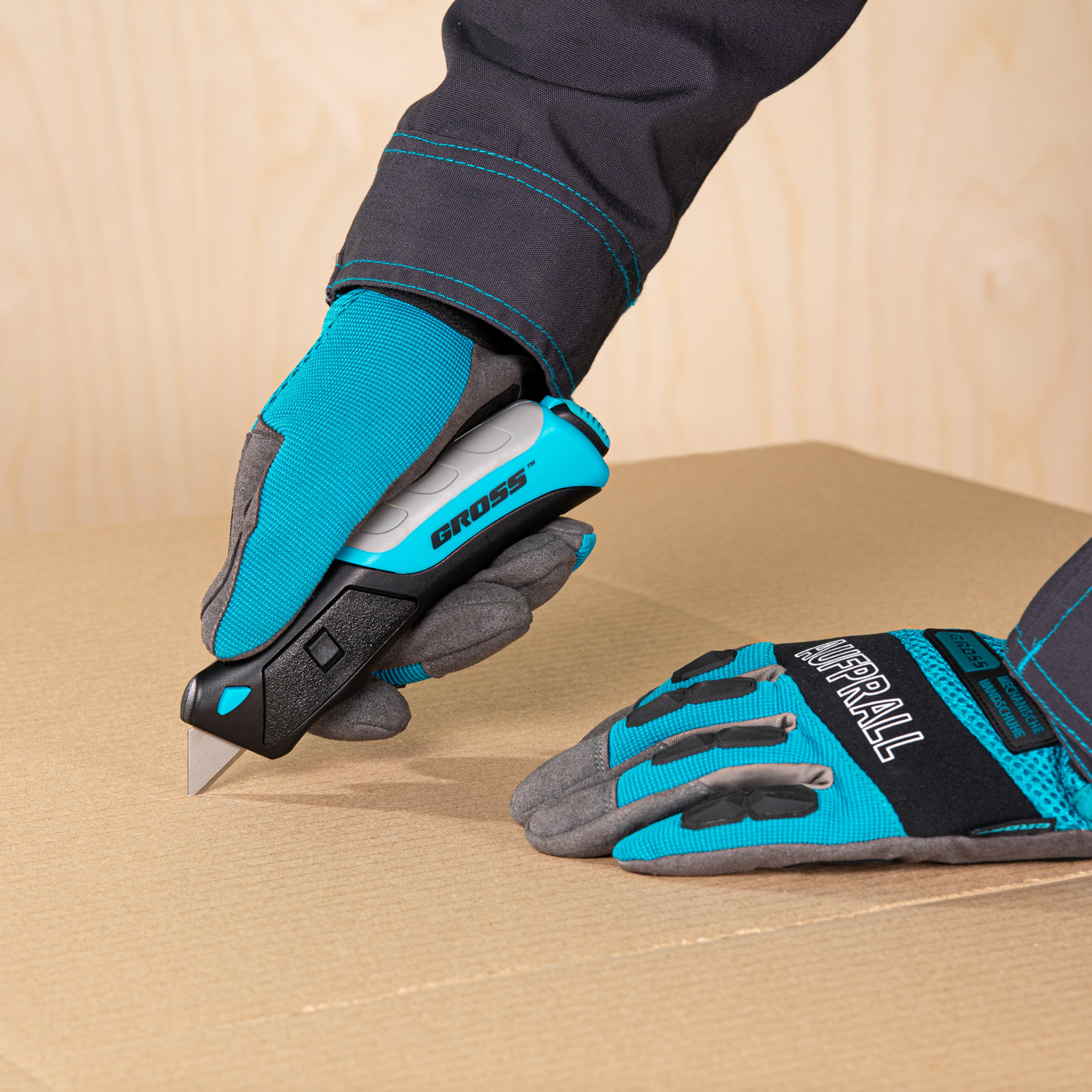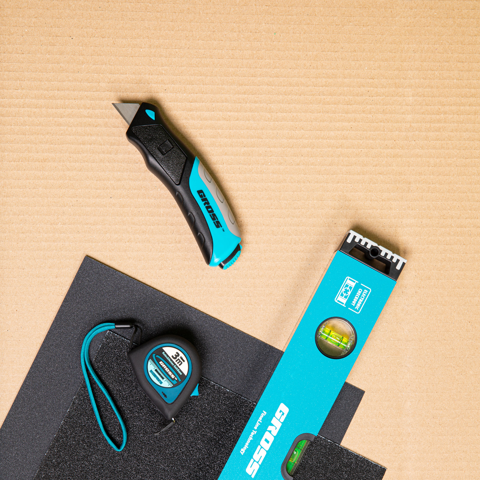 Ремонтно-монтажный нож Gross 78879 длиной 175 мм, с кнопочным автоматическим выбросом и возвратом лезвия, трехкомпонентной рукояткой и 5 запасными лезвиями, поможет раскроить линолеум или обои, разрезать картон, тонкий пластик, кожу, провода. Удобен в использовании — выброс лезвия и его возврат происходят автоматически при нажатии на кнопку с тыльной стороны корпуса. Нож является инструментом профессионального назначения, также будет полезен в быту.