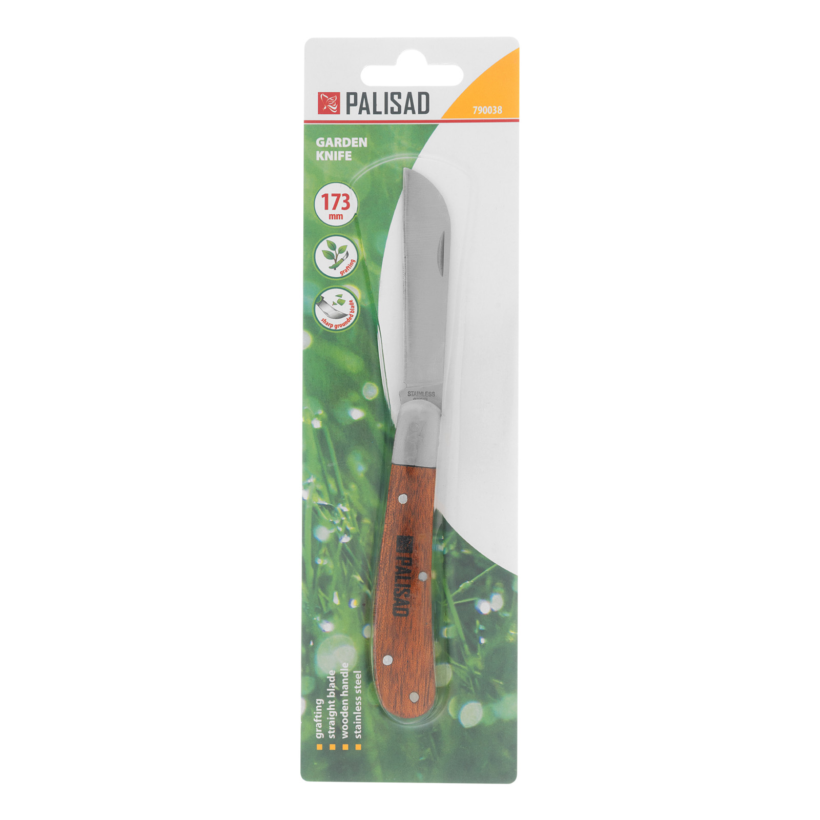 Нож садовый складной, прямое лезвие, 173 мм, деревянная рукоятка Palisad