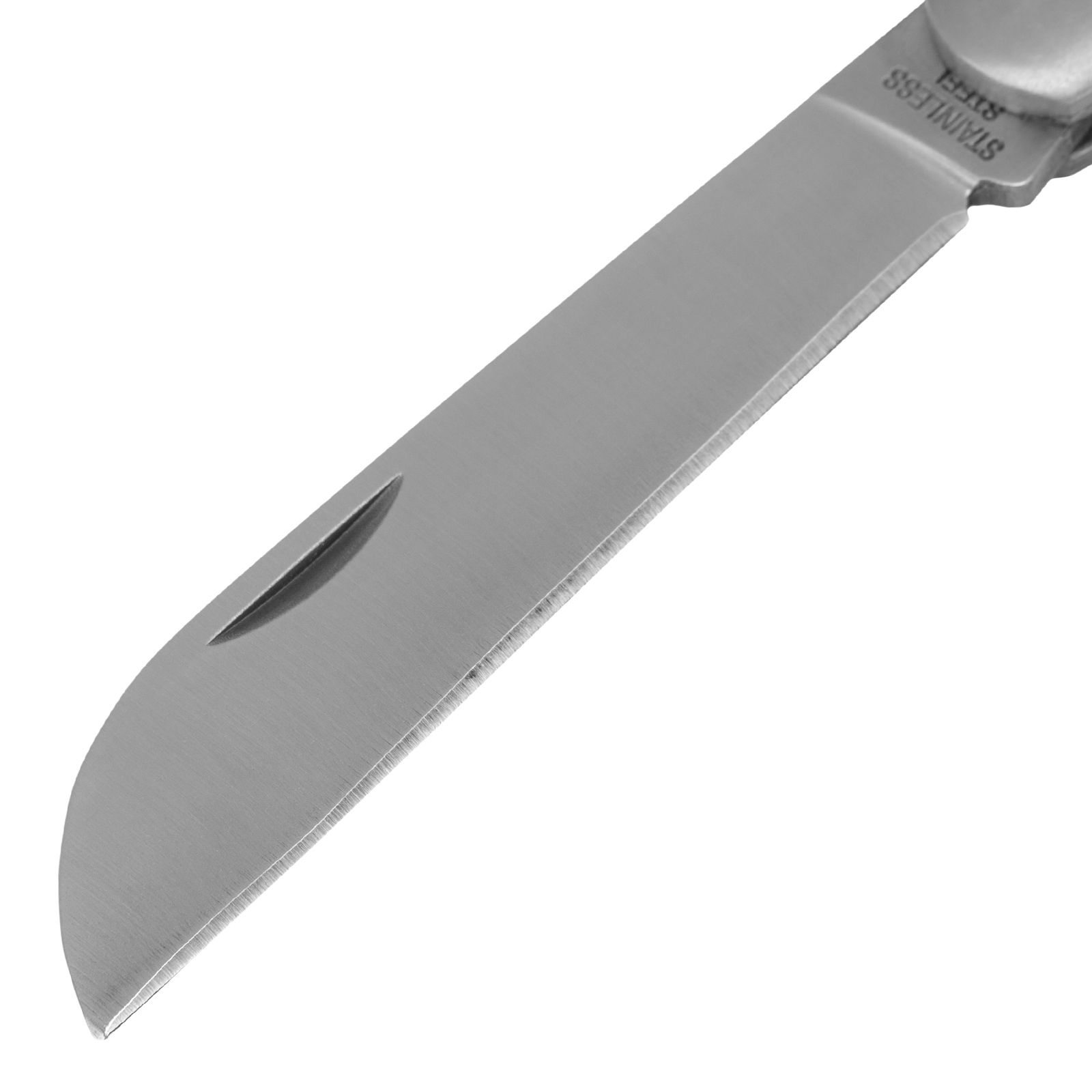 - Лезвие ножа выполнено из надежного и долговечного материала — нержавеющей стали, закаленной до твердости 48-50 HRC.
