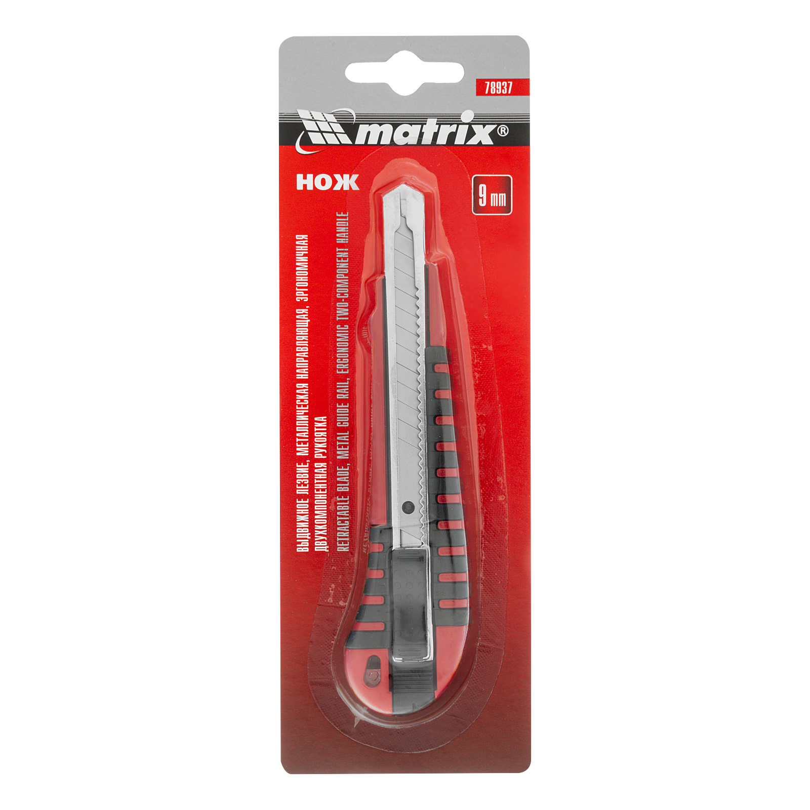 Нож, 9 мм, выдвижное лезвие, металлическая направляющая, эргономичная двухкомпонентная рукоятка Matrix