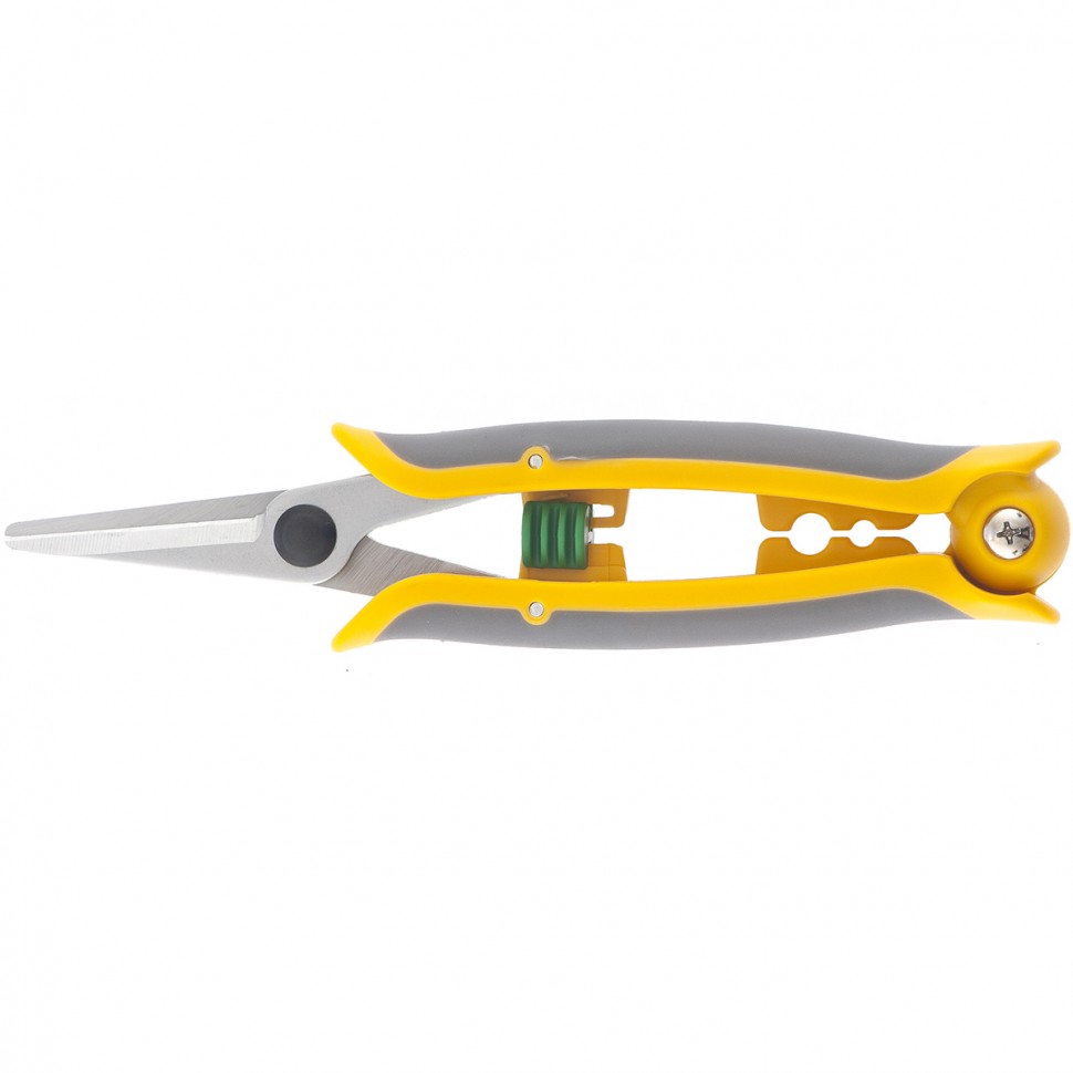 Ножницы Palisad Luxe 60497 используются для обрезки бонсай и создания топиариев. Срезают молодые ветки и цветочные стебли диаметром до 10 мм, а также способны резать бумагу, картон, ткань, подвязочную проволоку. Лезвия ножниц расположены в параллельных плоскостях, что обеспечивает точный и аккуратный срез. Плотность смыкания лезвий регулируется при помощи винта.