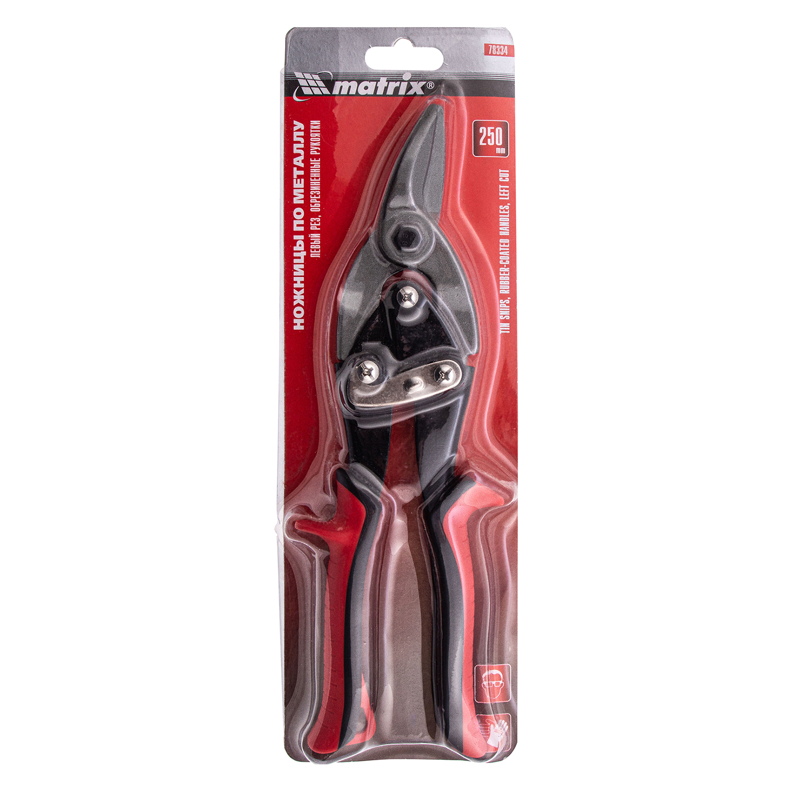 Ножницы по металлу, 250 мм, левые, обрезиненные рукоятки Matrix