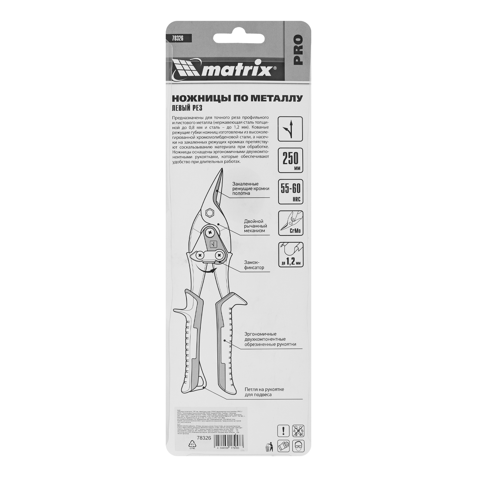 Ножницы по металлу Matrix PRO 78326 длиной 250 мм, из стали CrMo, с двухкомпонентными рукоятками, предназначены для левого реза листовых и профильных металлических заготовок, в том числе стали толщиной до 1,2 мм и нержавеющей стали толщиной до 0,8 мм. Двойной рычажный механизм позволяет прикладывать значительное усилие при резке толстого материала. Для удобства работы на корпусе имеется маркировка с указанием направления резания. Ножницы будут полезны в профессиональной и домашней мастерской.