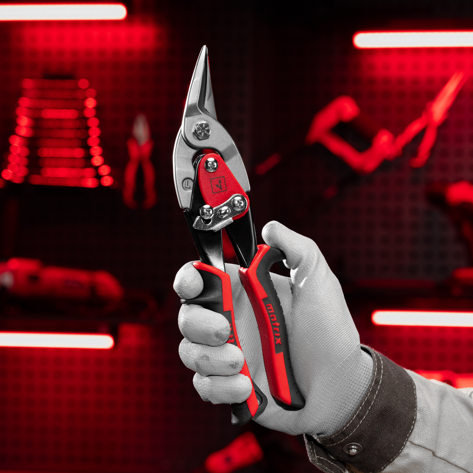 Ножницы по металлу, 250 мм, левый рез, сталь CRMO, двухкомпонентные рукоятки, PRO Matrix
