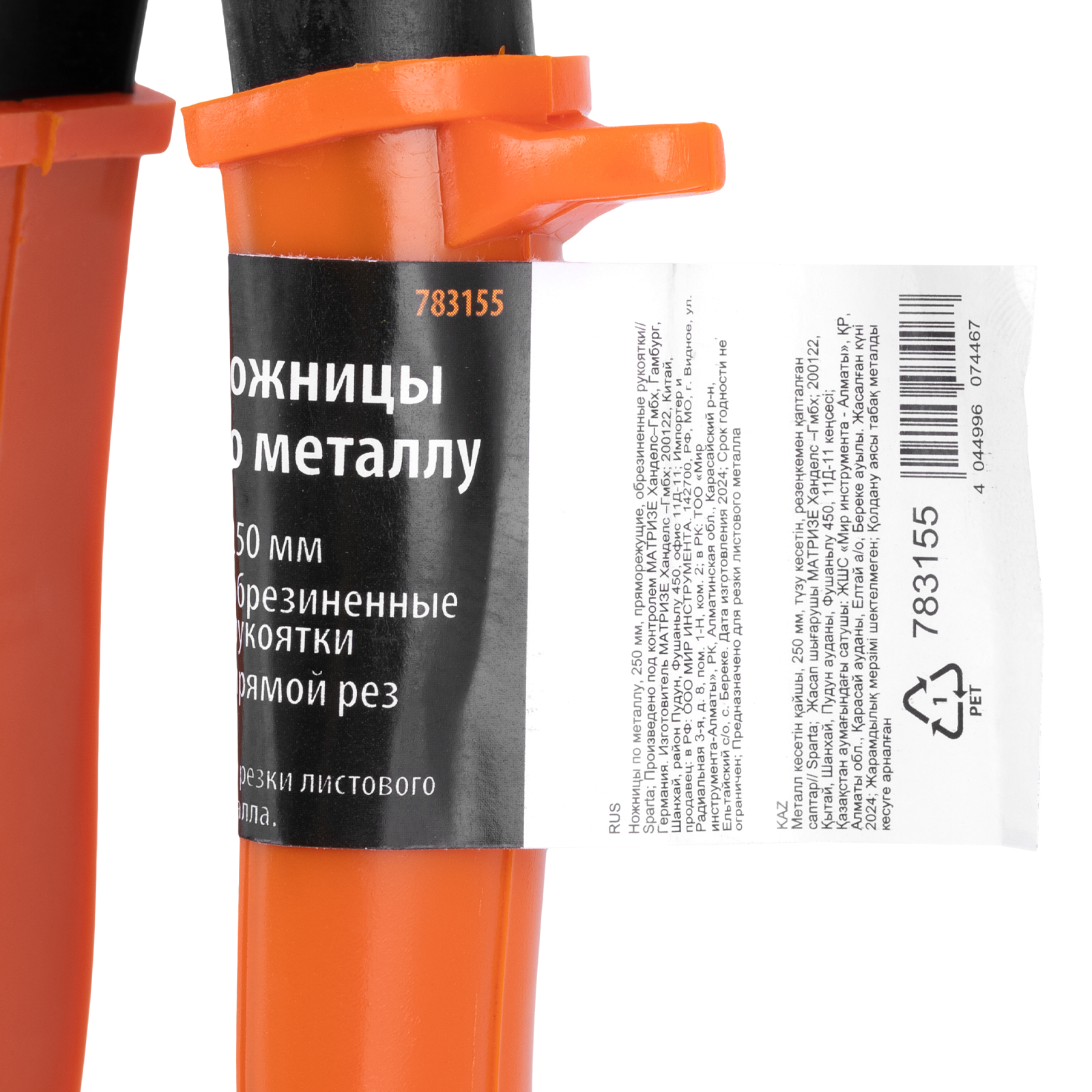 Ножницы по металлу, 250 мм, пряморежущие, обливные рукоятки Sparta