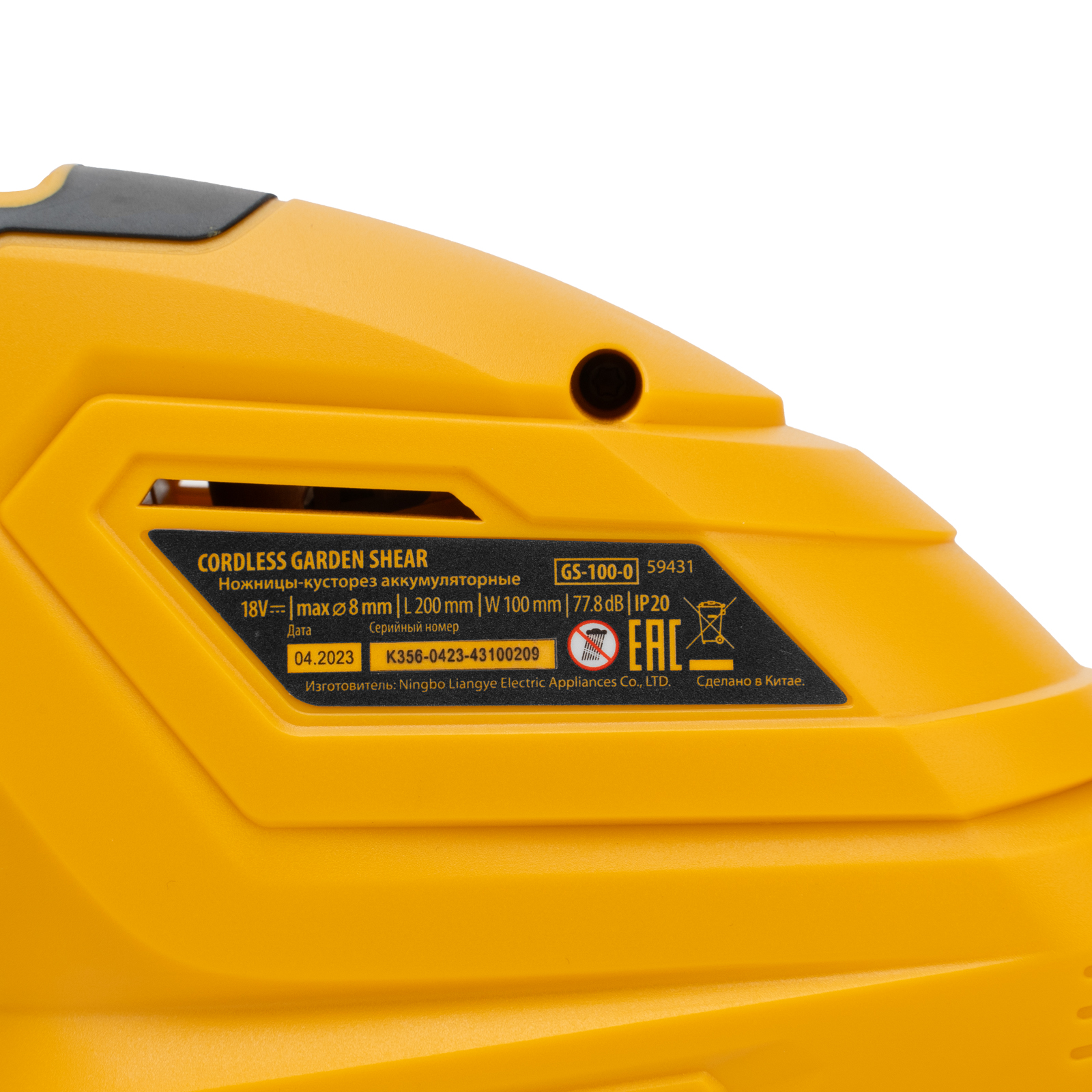Ножницы-кусторез аккумуляторные CGS-100-0, БЕЗ АКБ Denzel