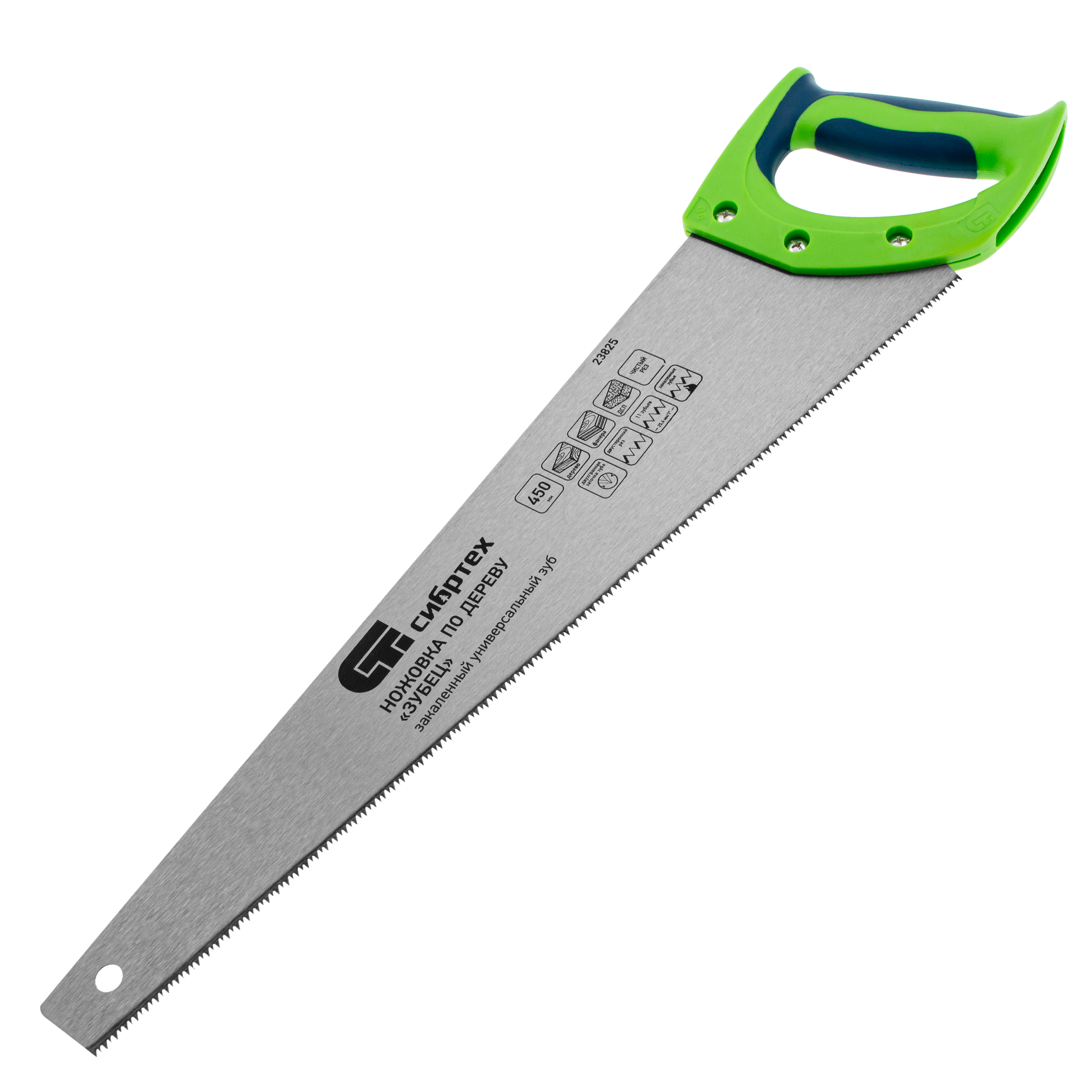 Ножовка по дереву "Зубец", 450 мм, 11 TPI, зуб 2D, каленый зуб, 2-х компонентная рукоятка Сибртех
