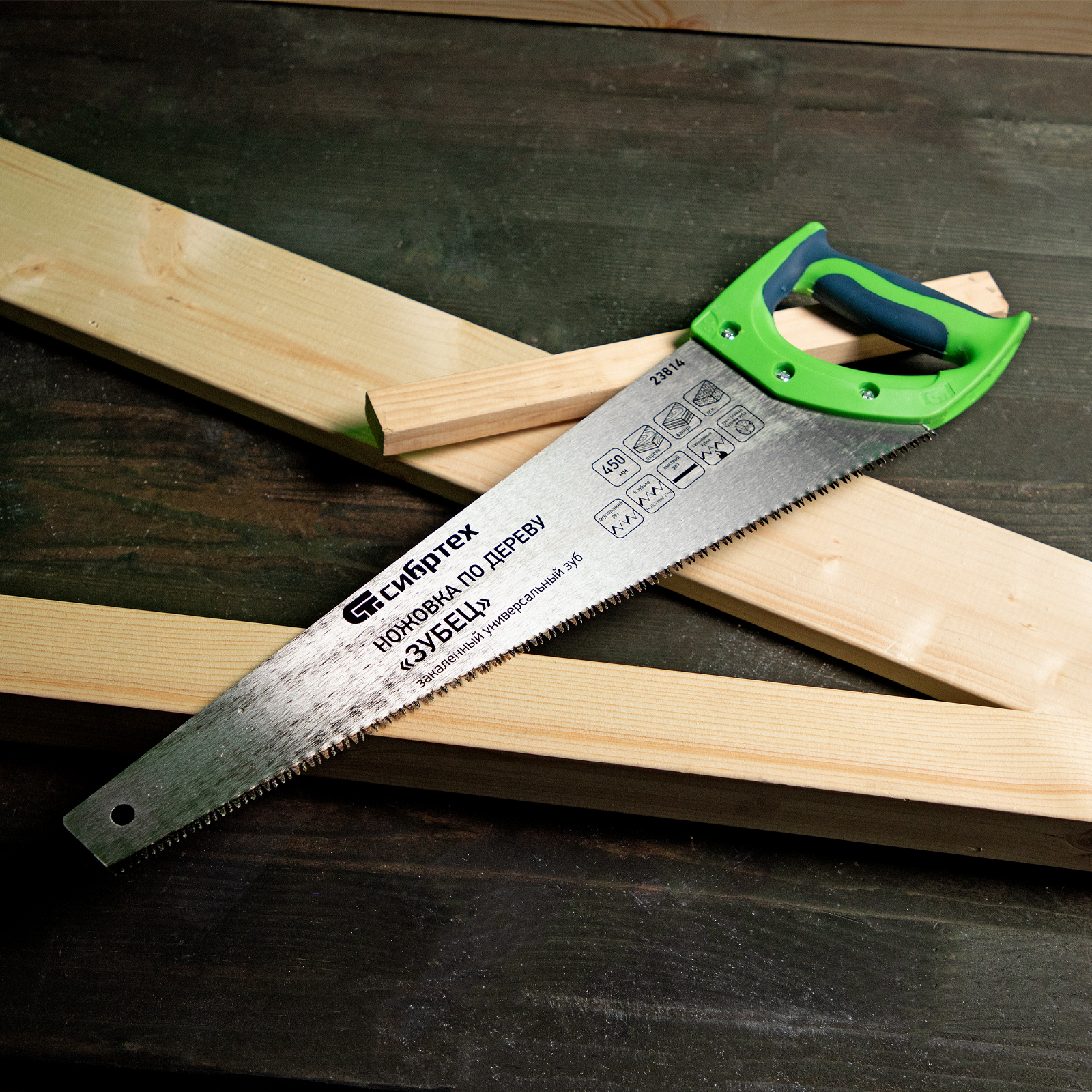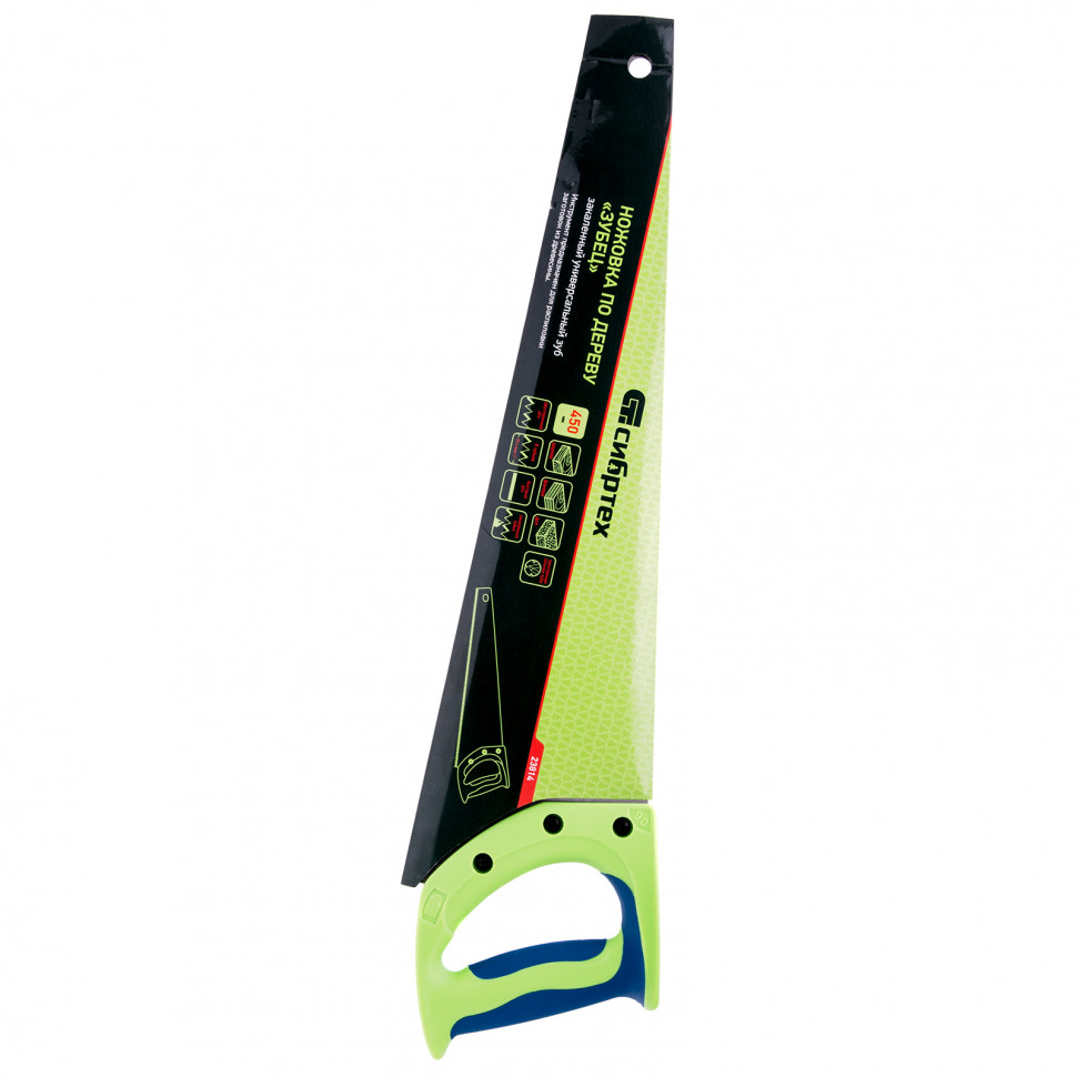 Ножовка по дереву "Зубец", 450 мм, 7-8 TPI, каленый зуб 3D, двухкомпонентная рукоятка Сибртех