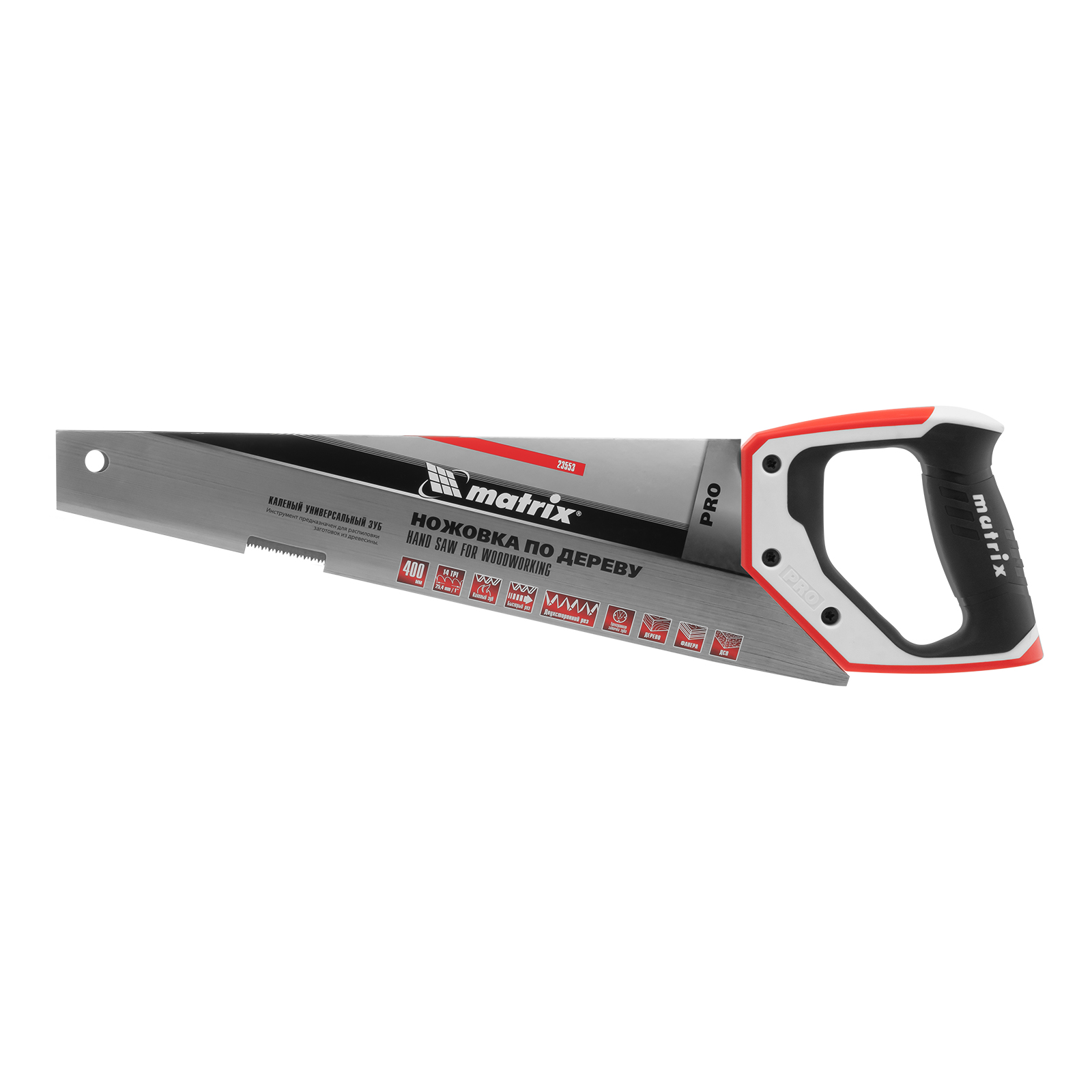 Ножовка по дереву для точных пильных работ, 400 мм, каленый зуб 3D, 14 TPI, трехкомпонентная рукоятка, Pro Matrix