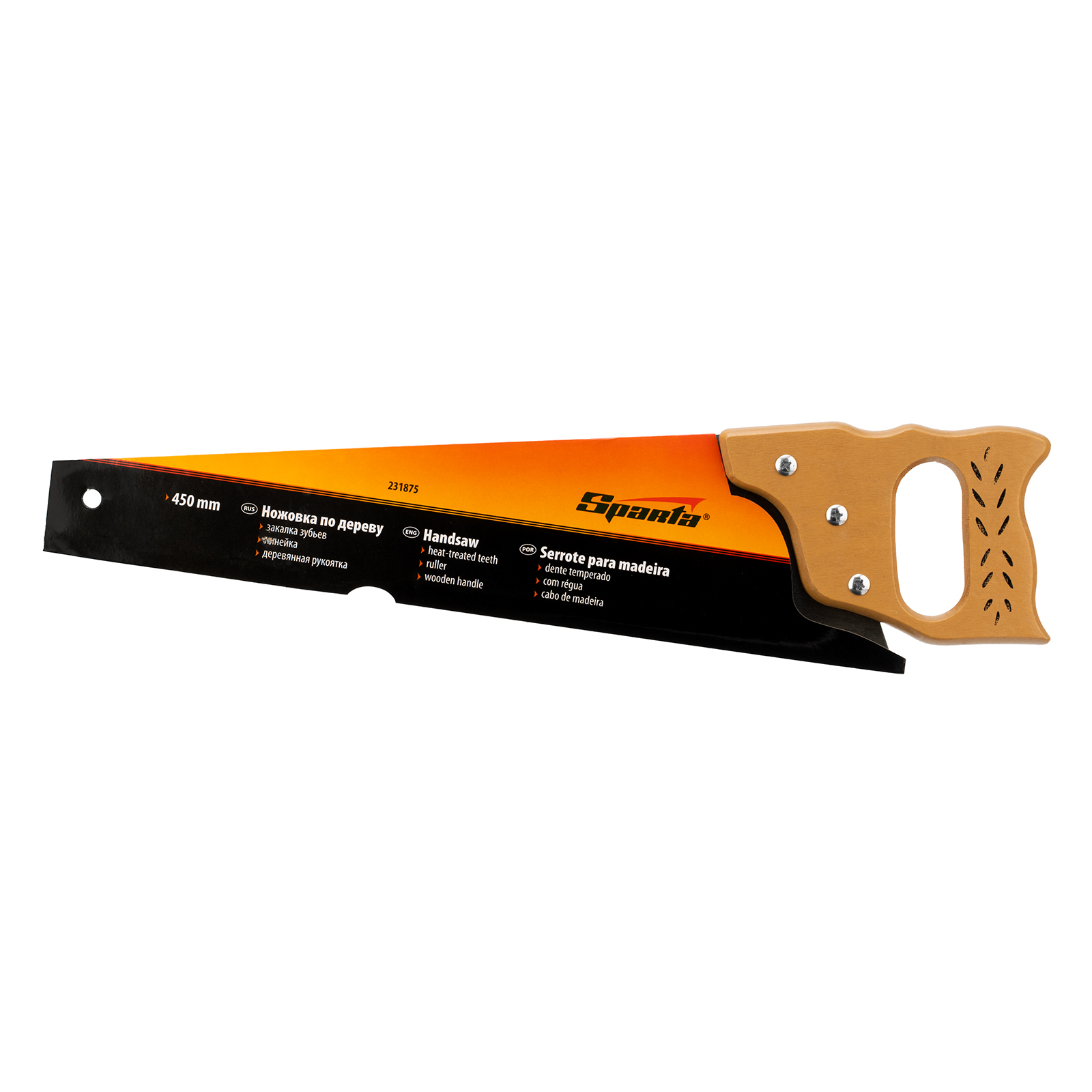 Ножовка по дереву Sparta 231875 с полотном длиной 450 мм, с калеными зубьями с шагом 7-8 TPI, с линейкой и деревянной рукояткой, предназначена для продольно-поперечного распиливания древесины. Благодаря зубьям с 2D-заточкой подходит для двухстороннего реза. Режущую кромку можно перетачивать. На полотно нанесена измерительная шкала, позволяющая производить замеры, не тратя время на поиск линейки. Ножовка используется в столярном и плотницком деле, а также полезна дома и на даче.