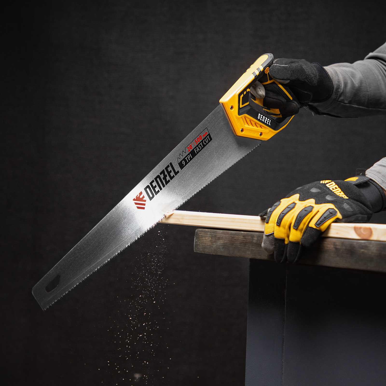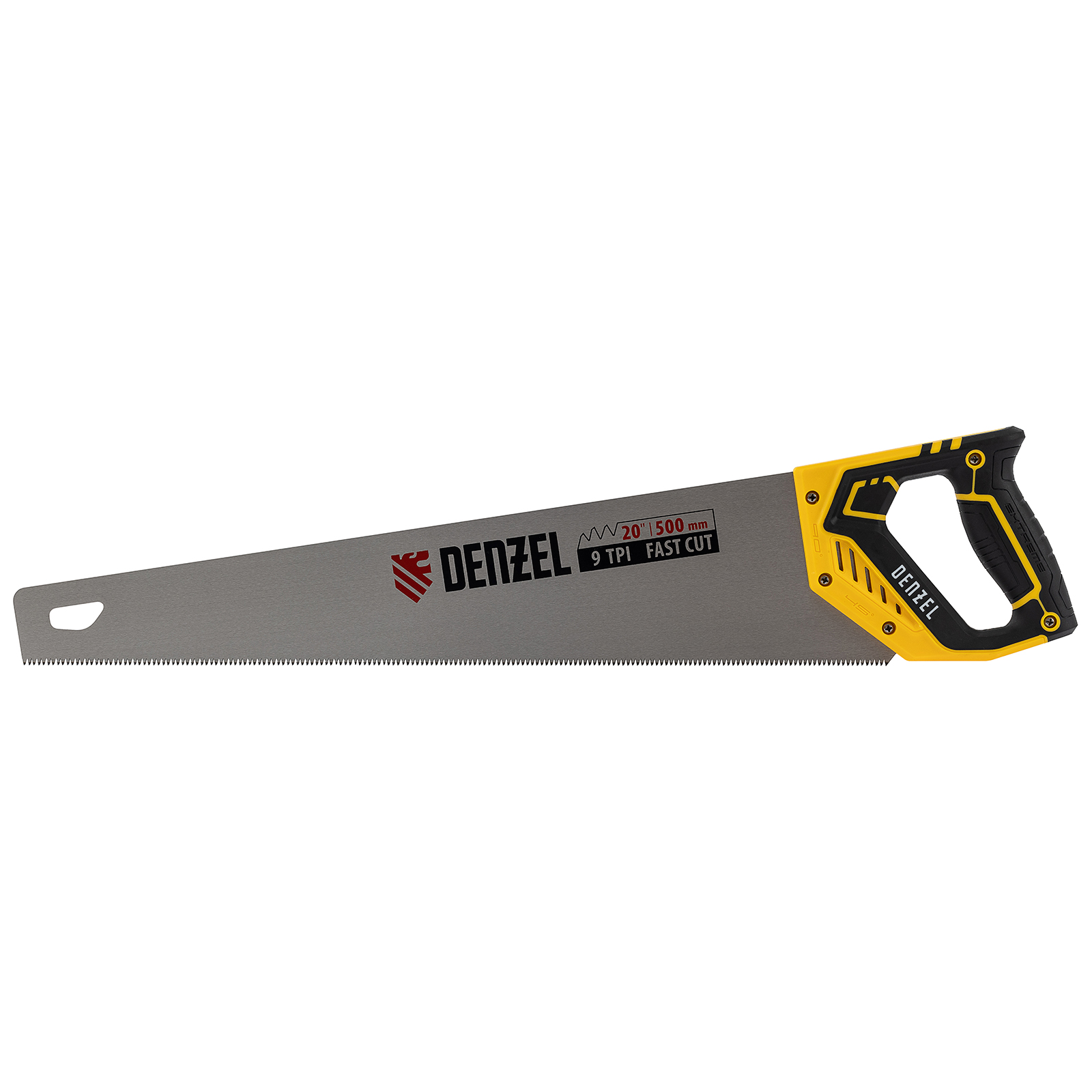 Ножовка по дереву, 500 мм, 9 TPI, зуб 3D, двухкомпонентная рукоятка Denzel