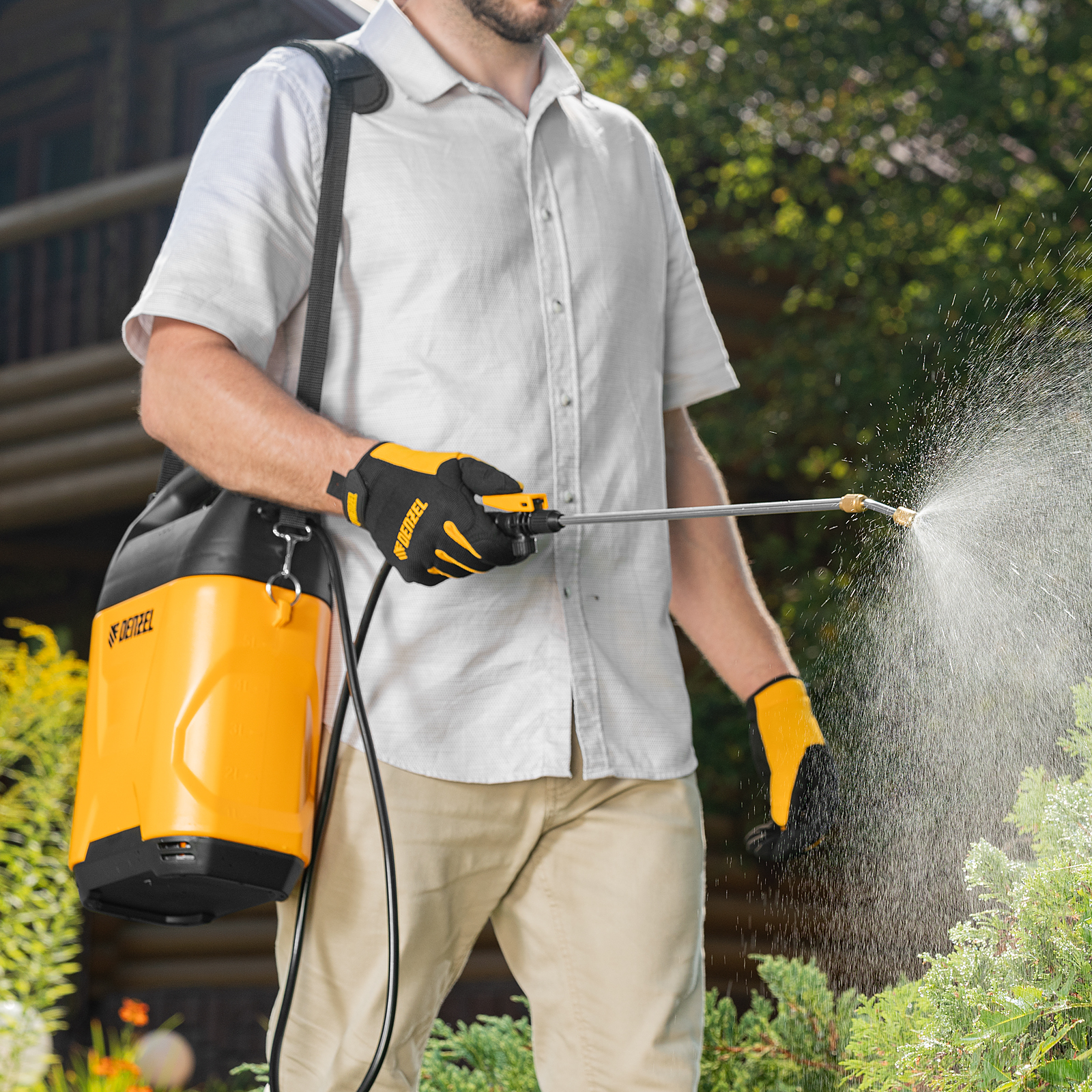 • Комфортная работа — опрыскиватель весит 1,5 кг и снабжен удобным плечевым ремнем с вентилируемой подушкой, что позволяет долго работать без ощущения усталости.