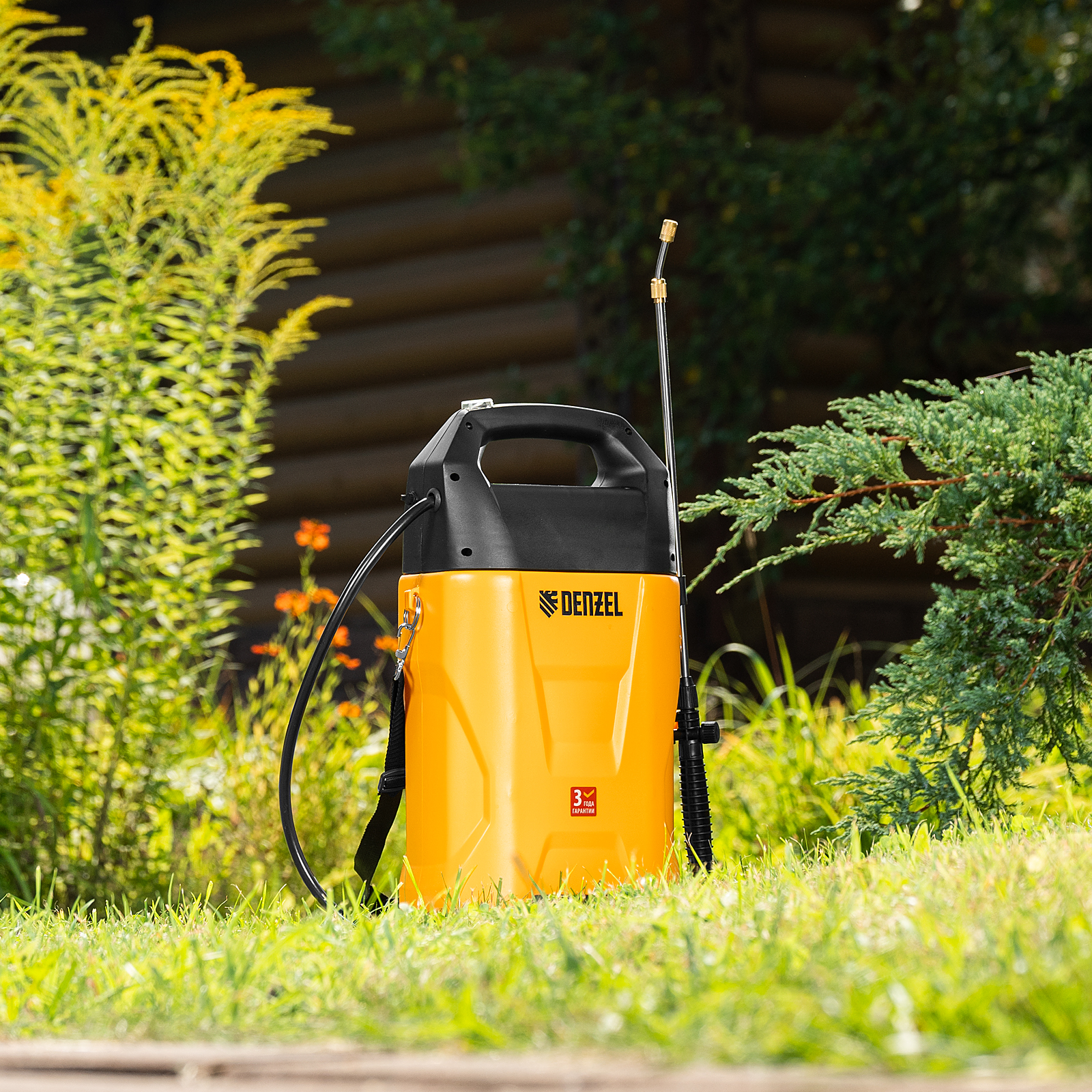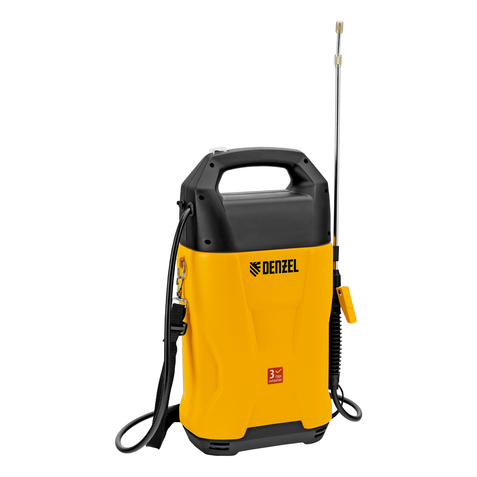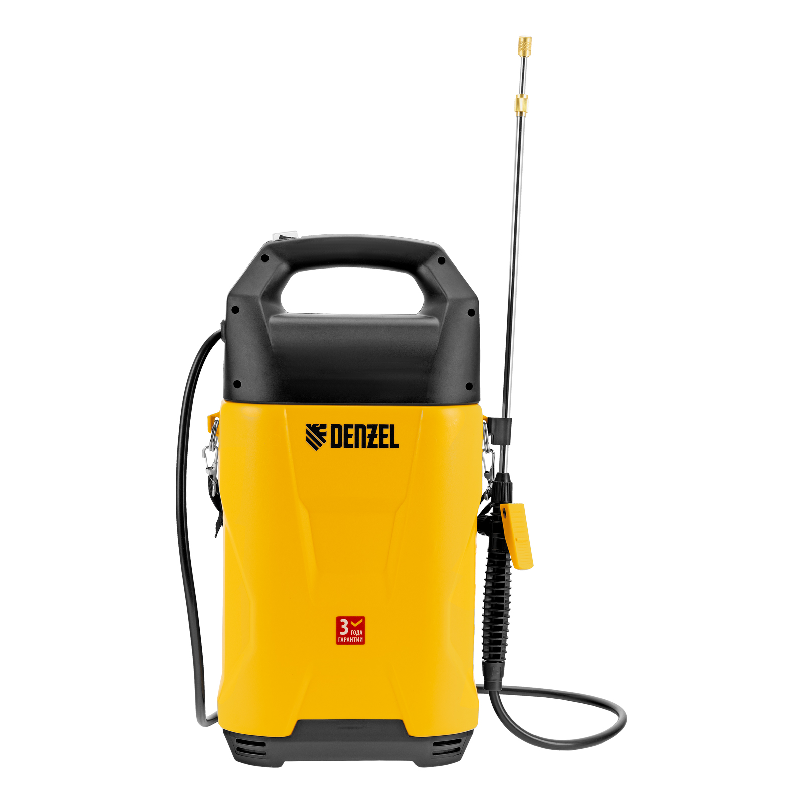 - Прочная и долговечная конструкция — корпус бака с ребрами жесткости устойчив к деформации, латунная насадка распылителя не подвержена коррозии.