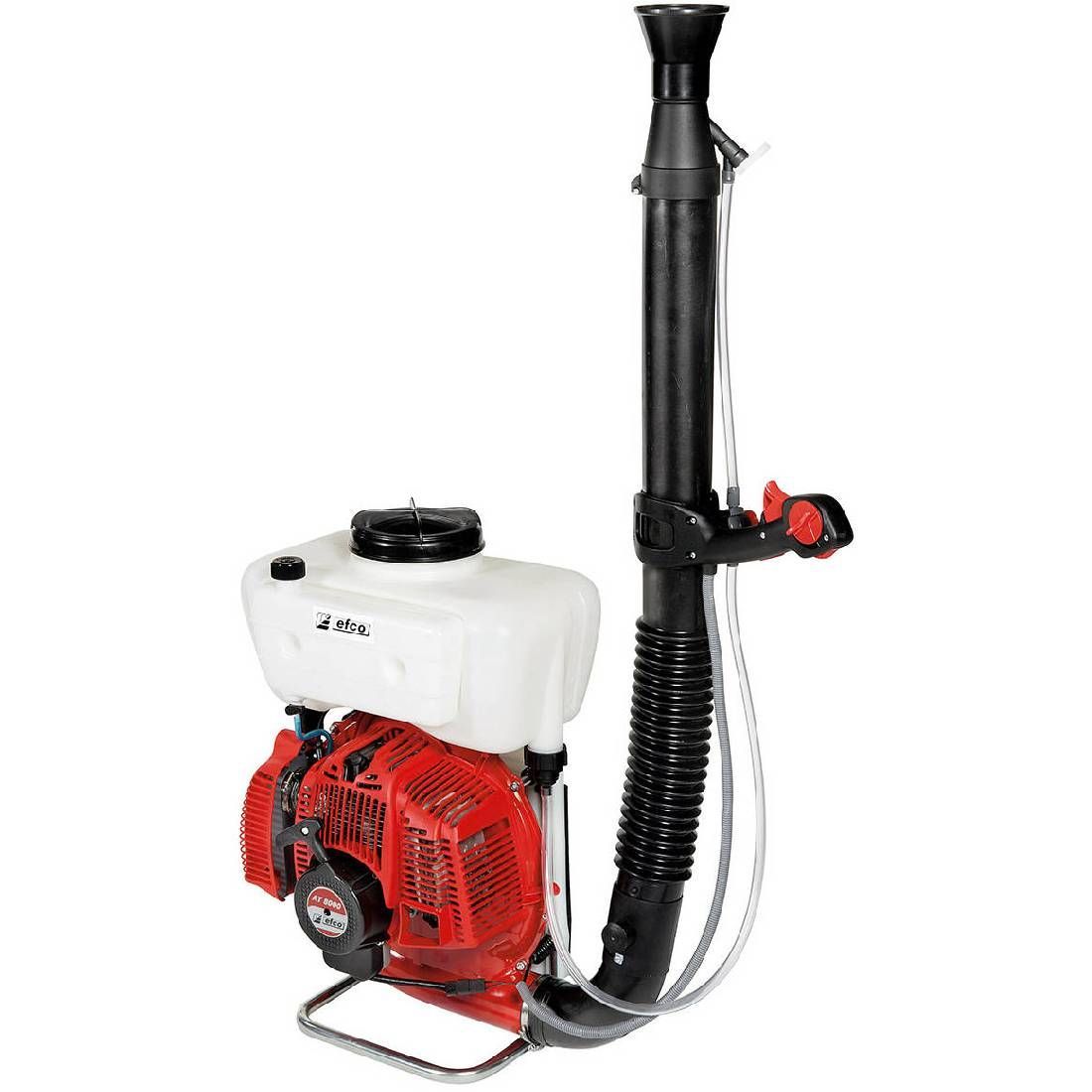 Опрыскиватель бензиновый EFCO AT 800 функционирует на базе надежного бензинового двигателя рабочим объемом 72,4 куб. см. и мощностью 5 л.с. Максимальная скорость воздушного потока составляет 120 м/с.