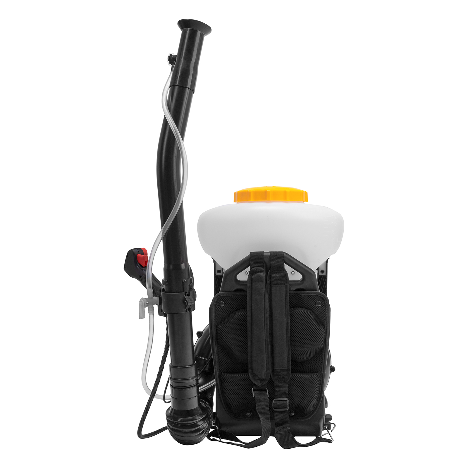 - Снижение нагрузки на позвоночник — плечевые ремни равномерно распределяют вес опрыскивателя.