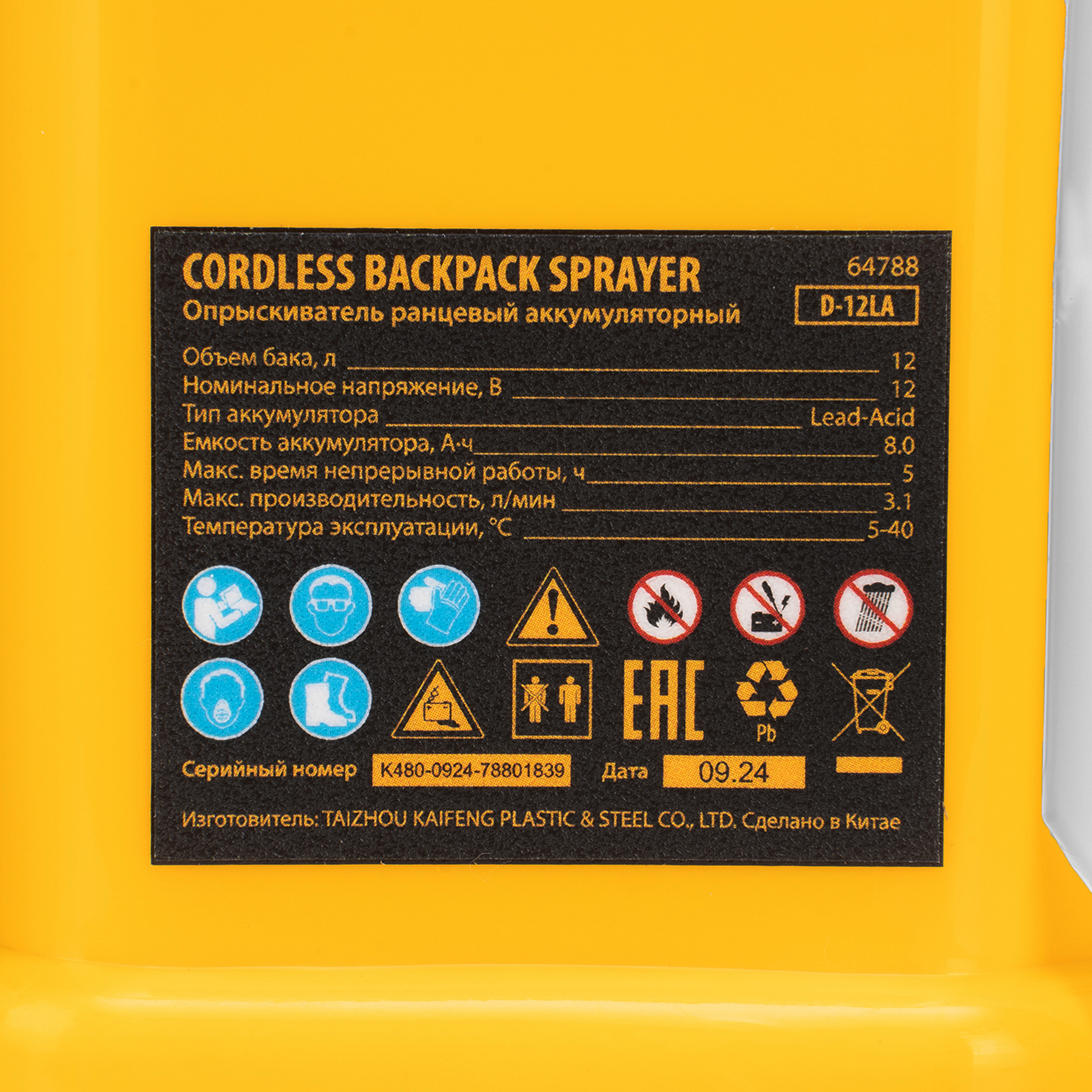 Опрыскиватель ранцевый аккумуляторный D-12LA, 12 л, 12 В, 8 Ач Denzel в Санкт-Петербурге