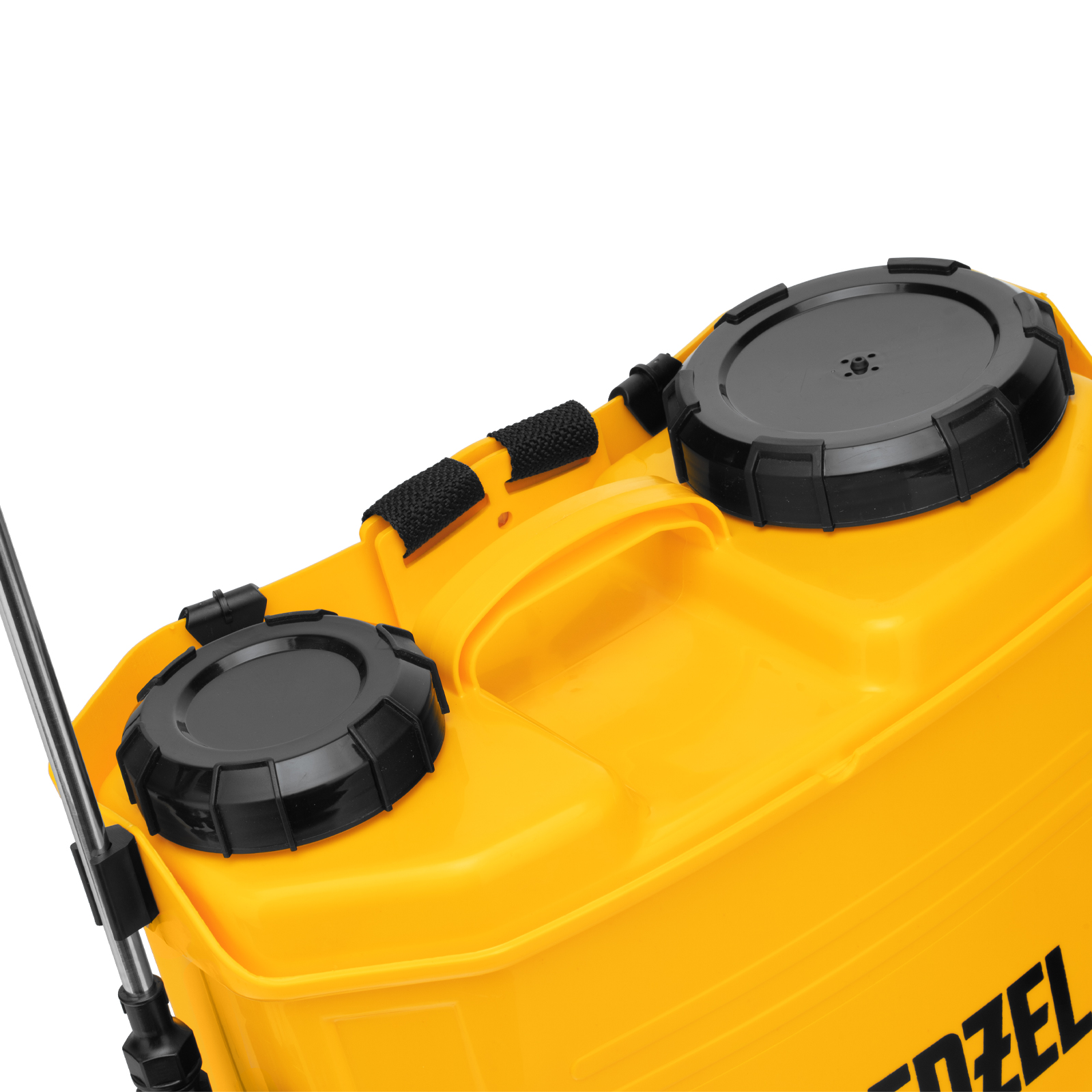 - Удобное перемещение — плечевые ремни с мягкими накладками равномерно распределяют вес опрыскивателя, снижая нагрузку на спину.