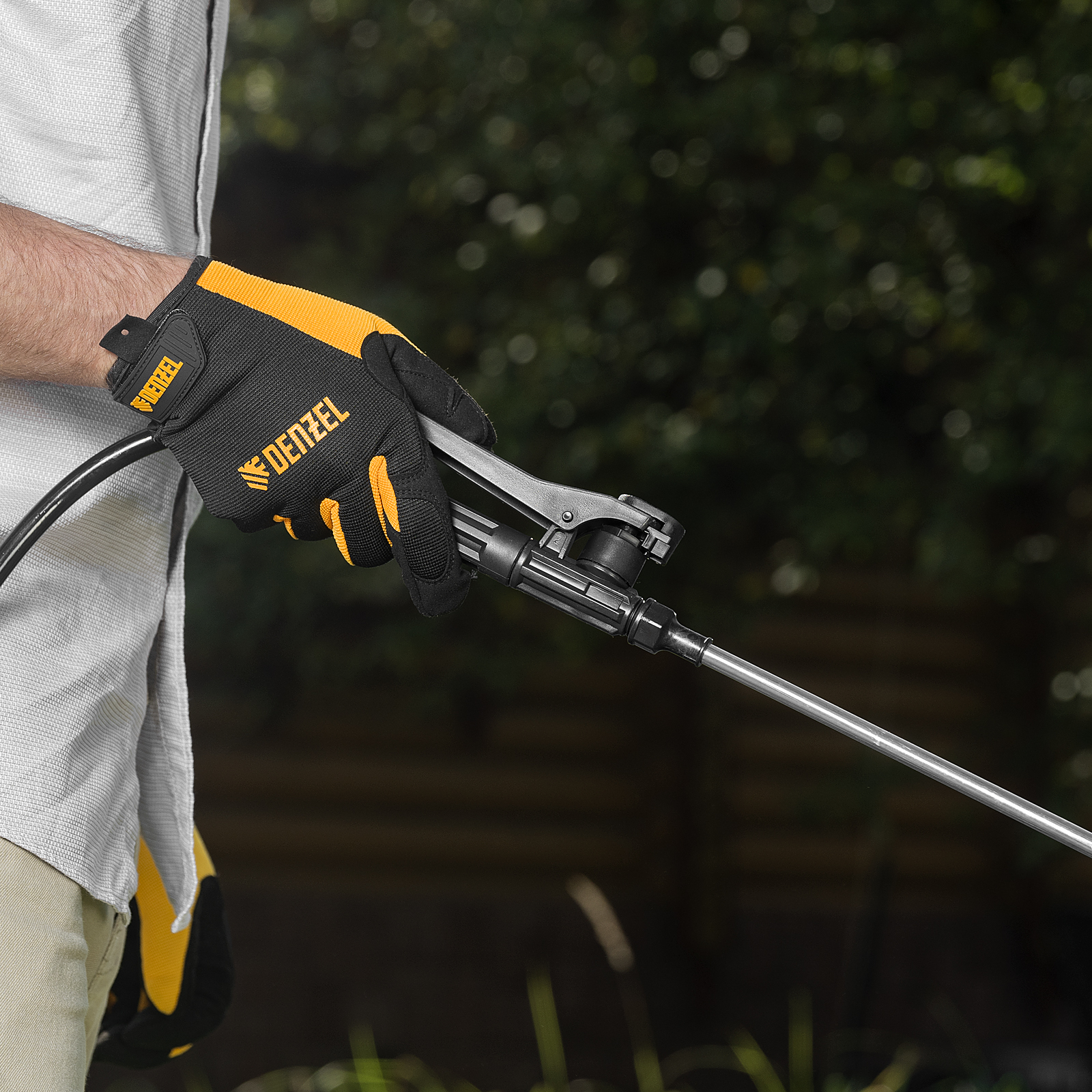 Ранцевый аккумуляторный опрыскиватель Denzel D-16LA 64789 с баком объемом 16 л и батареей на 12 В, емкостью 8 Ач, предназначен для распыления воды или инсектицидов. Используется для ухода за растениями, дезинфекции помещения, мытья окон и фасадов. Длина штанги регулируется в диапазоне 470-820 мм, а максимальная дальность распыления составляет 4 м, что облегчает обработку труднодоступных мест.