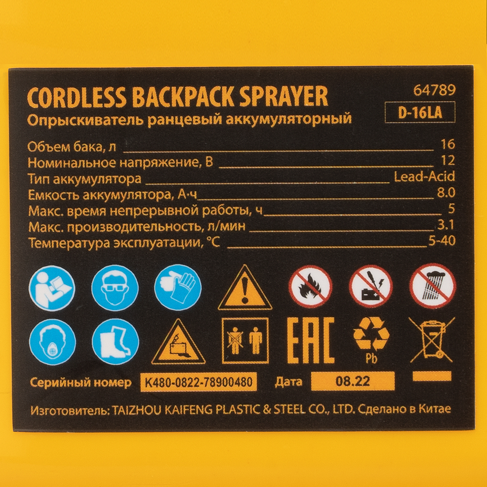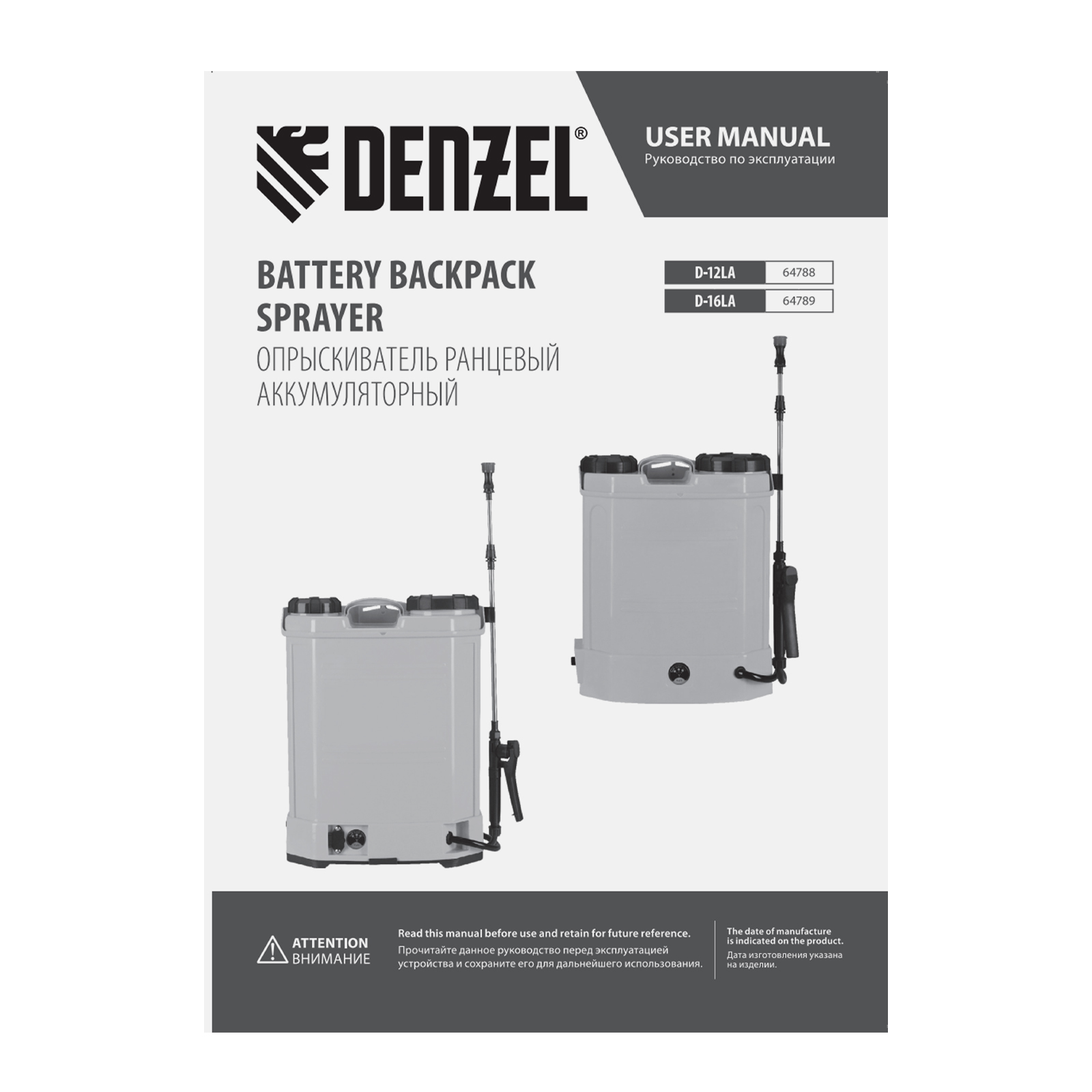 Опрыскиватель ранцевый аккумуляторный D-16LA, 16 л, 12 В, 8 Ач Denzel в Санкт-Петербурге