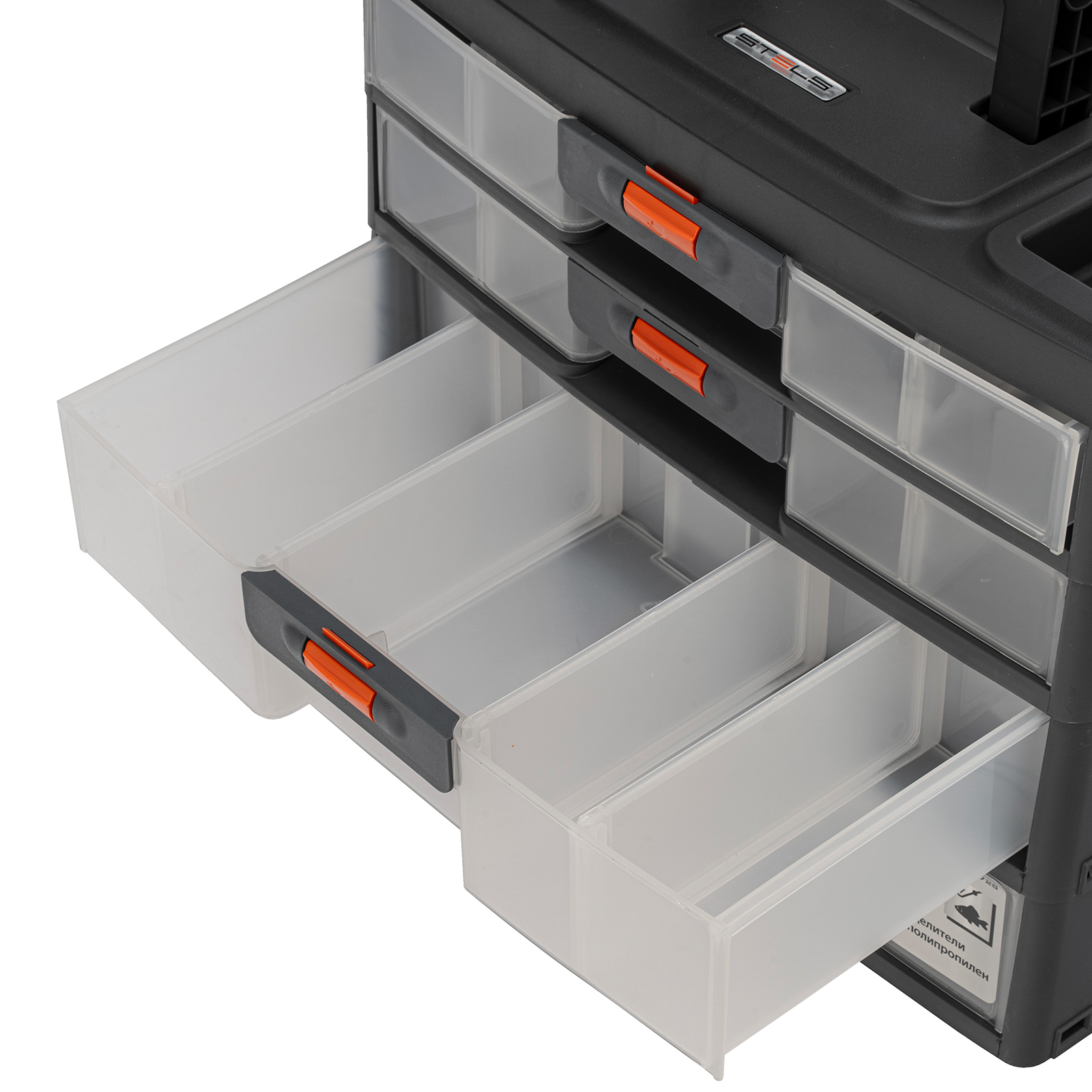 Органайзер для хранения с выдвижными лотками 310х150х260мм, 4 секции, пластик Stels